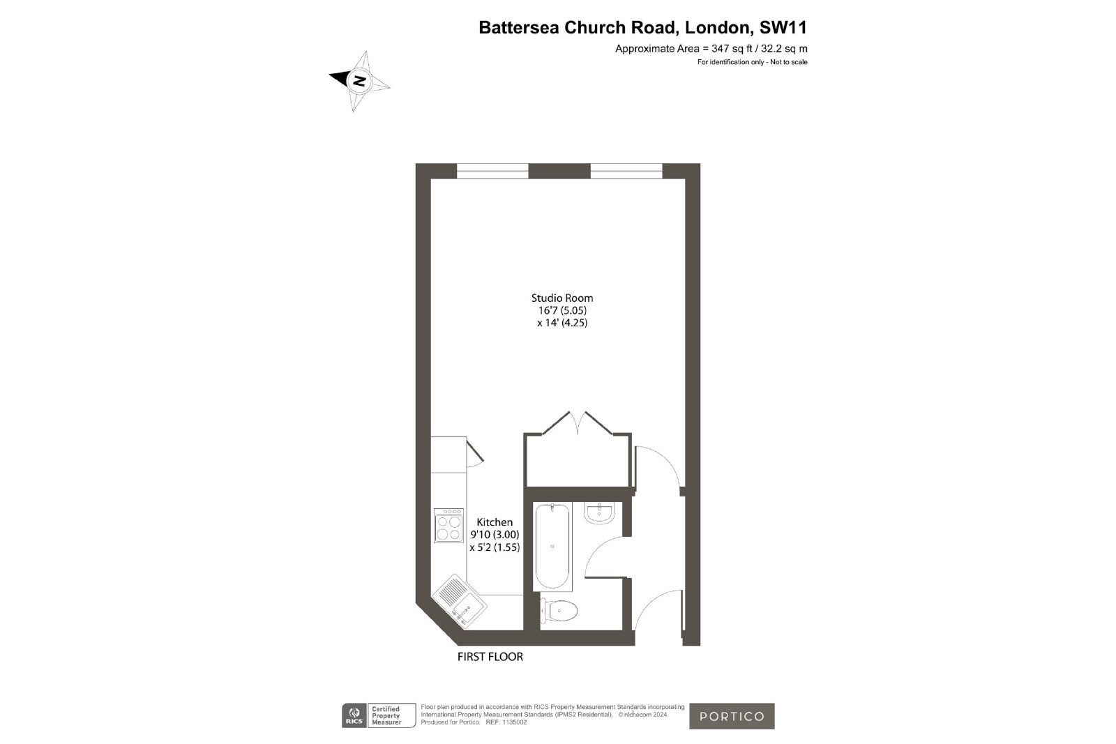 A smart studio apartment located on the first floor of a well-maintained building on Battersea Church Road.