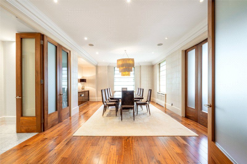 We are delighted to offer for sale this remarkable, and rarely available six-bedroom apartment which measures 3,690 sq. ft. This magnificent property has tall ceiling heights throughout, with inset LED spotlights and benefits from a 30ft reception room with an inter-connecting 22ft dining room. There are six en-suite bathrooms, bespoke fitted wardrobes and a master bedroom (with dressing area) which overlooks Regent’s Park. Abbey Lodge is an iconic development which forms part of the Crown Estate and is superbly located less than a mile away from both Baker Street and St John’s Wood Underground Stations, there is also residents’ parking subject to availability. Both Lord’s Cricket Ground and the newly landscaped St John’s Wood High Street, with its rich selection of restaurants and boutique shopping facilities, are less than half a mile away