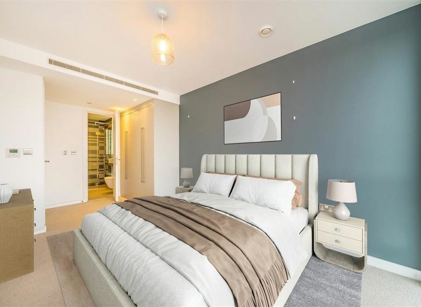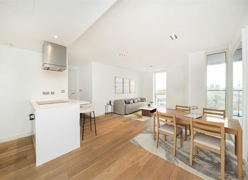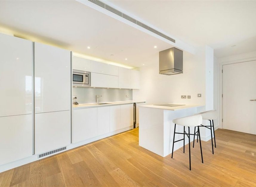 This modern, spacious apartment located on the 9th floor features two double bedrooms, one with en suite bathroom, a family bathroom, a modern kitchen, and large covered balcony. The building benefits from a 24 hour concierge, communal courtyard, communal roof terrace, secure bicycle storage and parking space, and a residents gym.