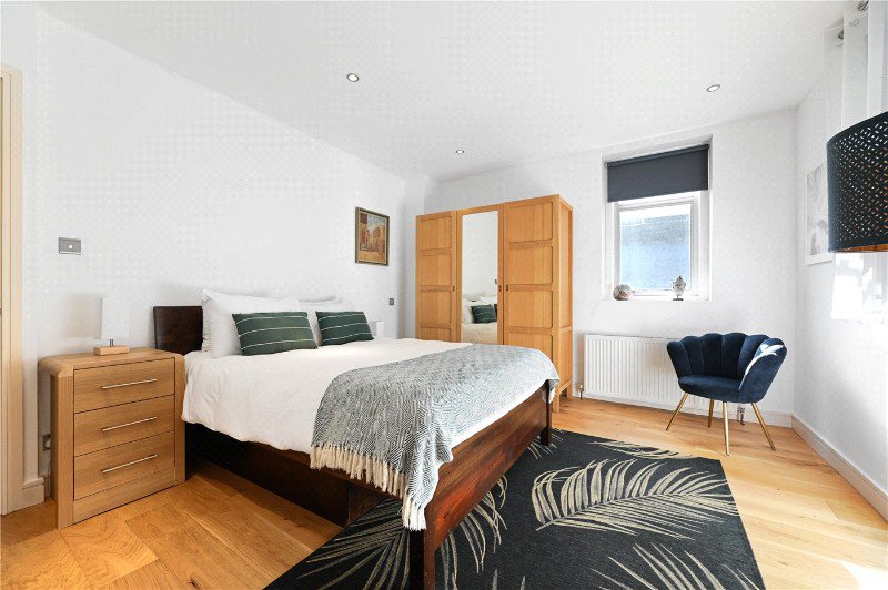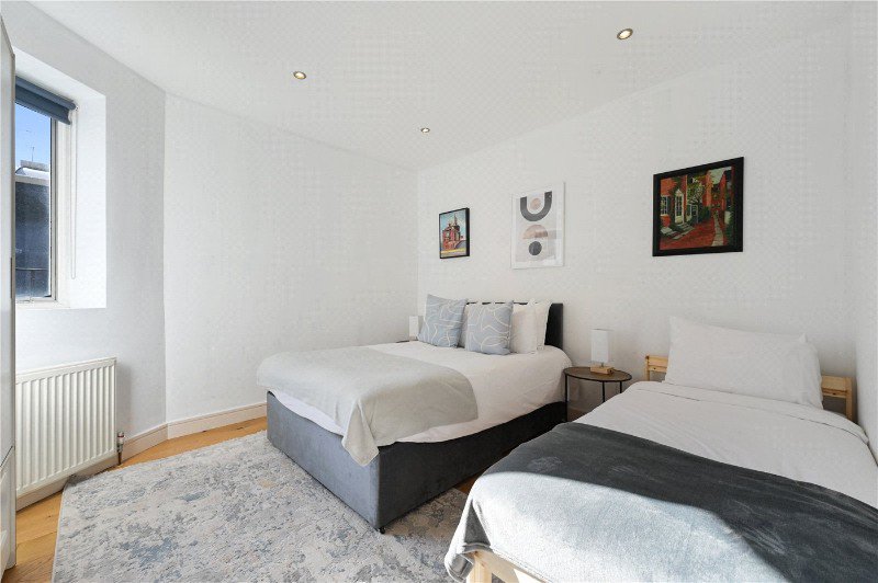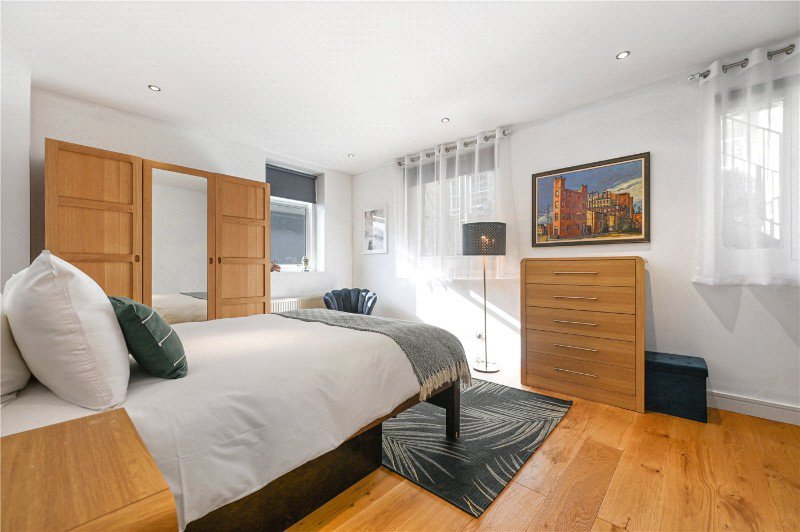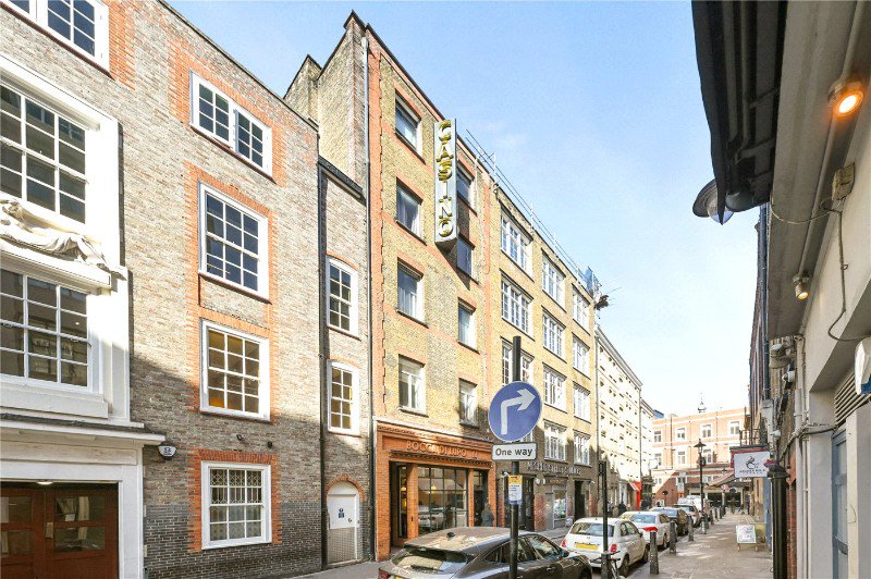 Just a two-minute walk from Piccadilly Circus, this bright two-bedroom, two-bathroom apartment occupies the second floor of an attractive period building and offers over 1,000 sq ft of lateral living space. The property forms part of a former loft-style conversion and was once home to Charlie Chester’s Casino, giving it a distinctive Soho provenance.