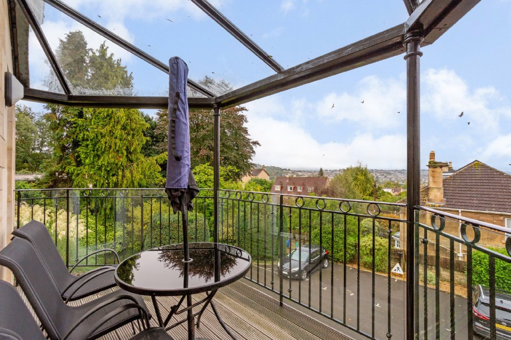 A large luxury flat originally converted by the owners for their retirement with its magnificent views from the balcony, set in a beautiful garden at the top of a long private drive, yet so close to the city and the station. Three en-suite bedrooms and a further study bedroom, plus a garage and private parking with E.V. charging.