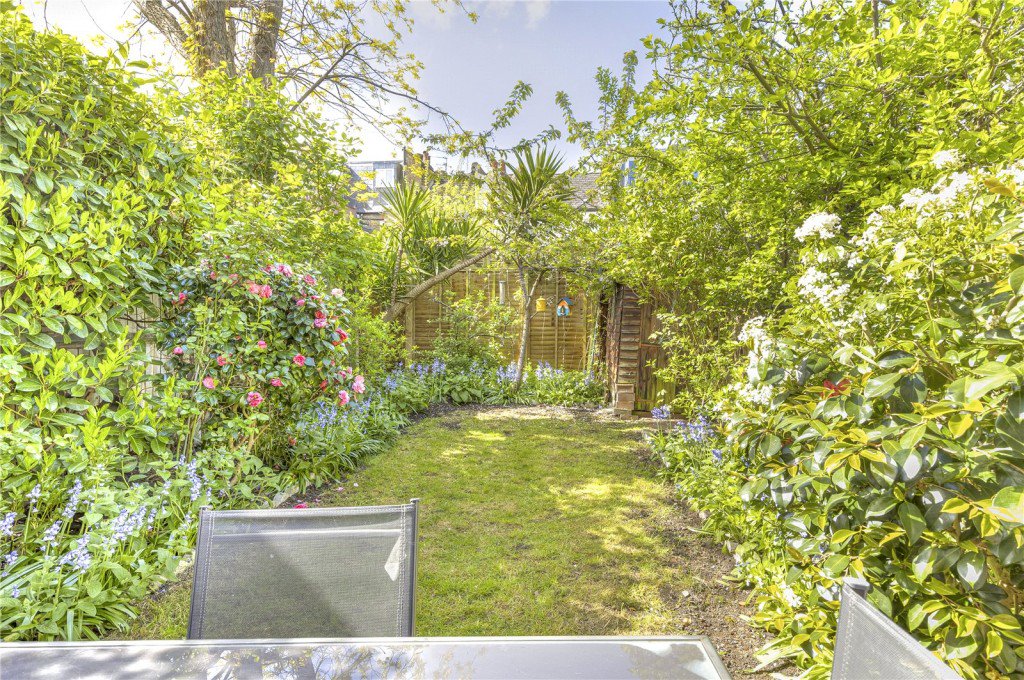 With its own private entrance and freshly decorated interiors, the property features a bright reception room, a well-proportioned kitchen with ample space for dining, and direct access to a stunning, mature south-west facing garden that is remarkably large for the area. The garden’s established landscaping and sunny orientation make it exceptionally private and tranquil, perfect for entertaining or relaxing.