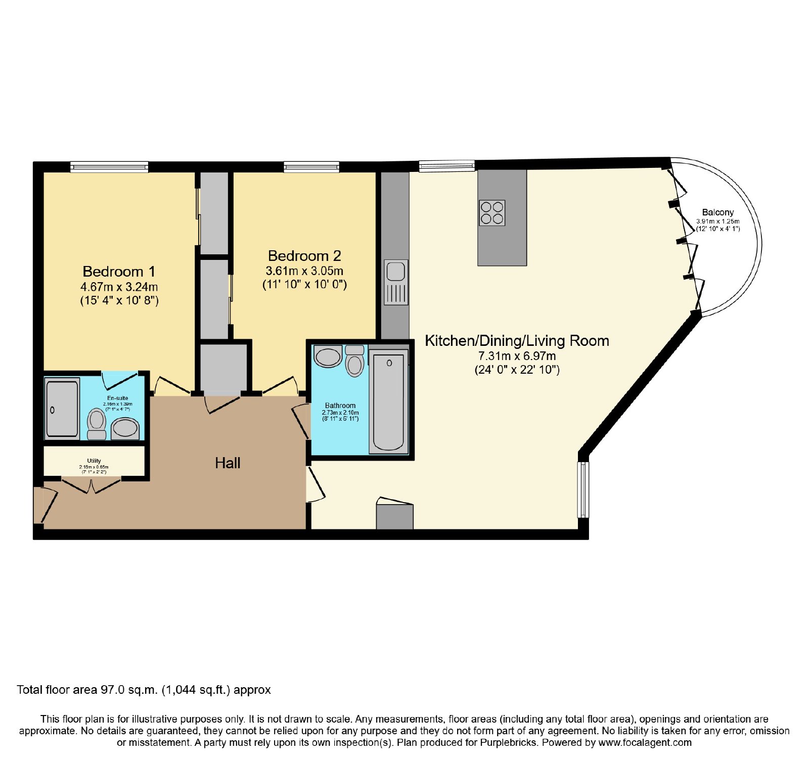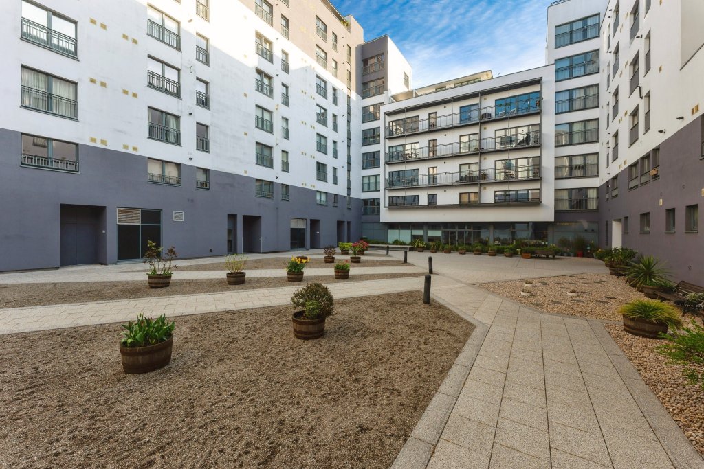 Purplebricks are pleased to offer to the market this exceptionally spacious executive Merchant City apartment situated on the first floor and offering views from its own private balcony across towards the Tollbooth Steeple and beyond along the Trongate and back towards the city centre. The layout extends to a secure entry system to the internal communal areas where there is a stairwell as well as lift access to all floors, there is a broad welcoming entrance hallway with useful storage space as well as a concealed utility area for all those day to day laundry needs, the feature lounge / dining / kitchen area is quite spectacular and offers a private balcony for further outdoor space, the kitchen is fully fitted and integrated with a central island breakfasting bar, there are two double bedrooms one having an en suite shower room and both with wardrobe storage, a lovely family bathroom completes the accommodation. There is underground parking also a central communal courtyard. Lovely modern flat deserving of an internal inspection Located on the Gallowgate just of High Street in the Merchant City, this location offers unquestionably one of the most envied and prominent social locations Glasgow has to offer with a wealth of amenities including both general and specialist shopping, wine bars and many highly acclaimed restaurants. This destination neighbourhood, within Glasgow’s City Centre has benefitted from significant and ongoing redevelopment in the last few decades with a mix of both residential and commercial redevelopment. The property is in close proximity to Glasgow’s Style Mile, Glasgow’s International Financial Services District. The area benefits from frequent public transport with easy access to Queen Street and Central train stations, and both Buchanan St and St Enoch subway stations. Public transport and road links are excellent. Viewing is highly recommended