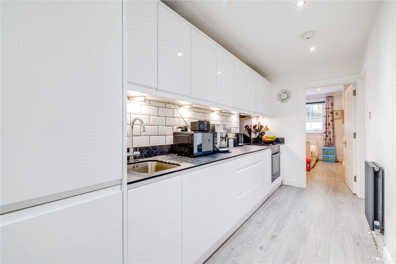 The flat consists of a brilliant kitchen with plenty of storage solutions and high end appliances, a separate spacious sitting room leading out onto the especially large garden. There is generous sized master bedroom and a smaller second double bedroom, which are served by a modern bathroom.