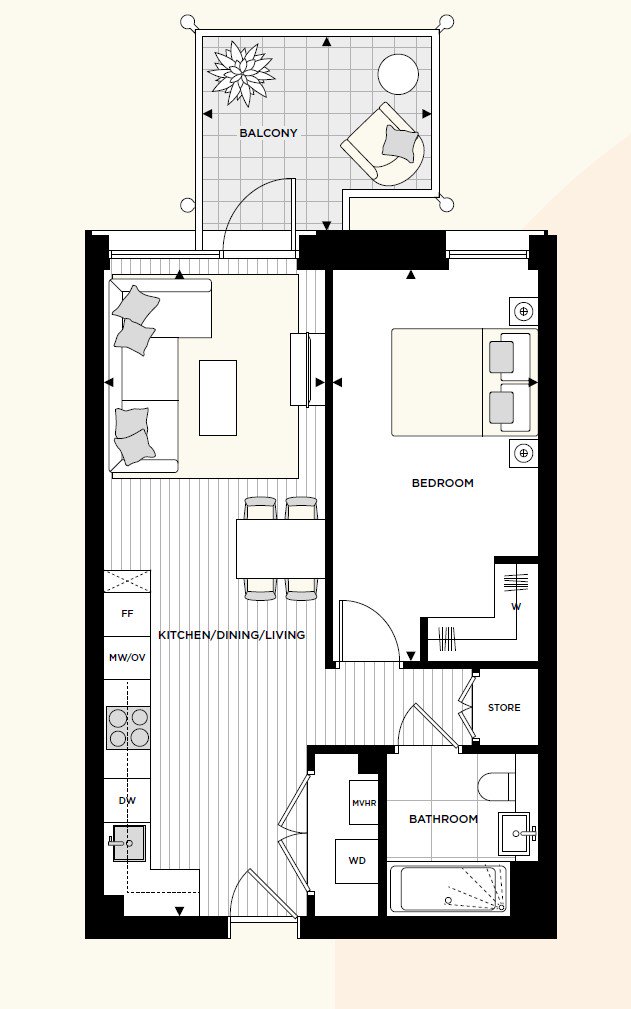 A modern one-bedroom apartment with private balcony in beautiful Hammersmith.