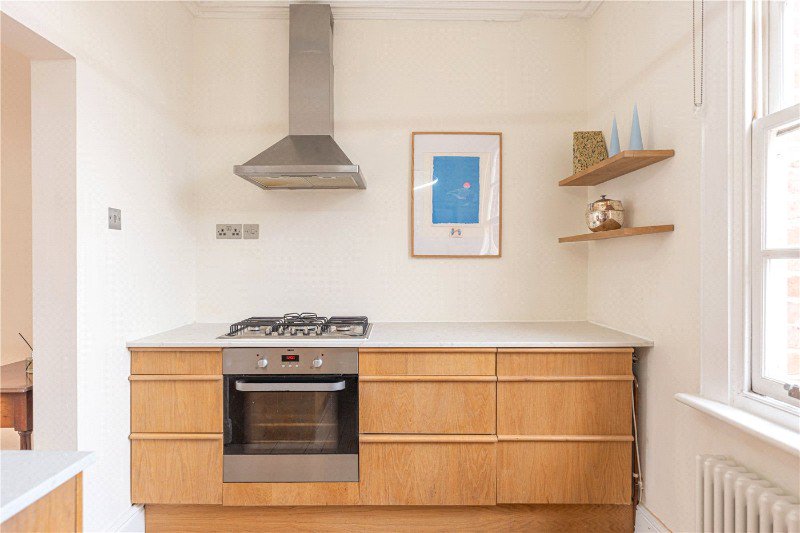 Adjoining the sitting room, the beautifully designed kitchen has a rear aspect window and wooden cabinetry topped off with marble countertops providing ample kitchen storage. There are a number of integrated appliances including a fridge, gas hobs and dishwasher. The current owners have replaced the boiler, which is still under guarantee.