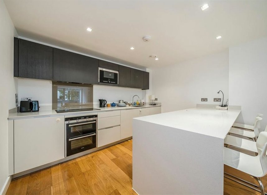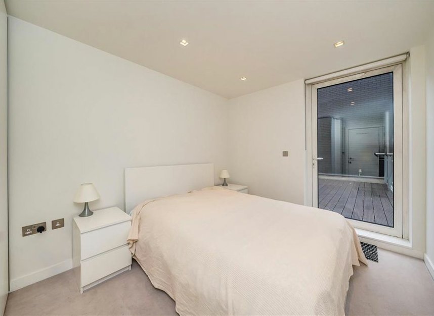 A three-bedroom apartment with a balcony and terrace on the first floor in Spenlow Apartments. This property comprises of a sizeable, fully integrated kitchen/dining and living area with floor-to-ceiling windows leading into a west-facing balcony, a large main bedroom with en suite and large built-in wardrobe, another double bedroom with again access to the west-facing balcony, a bedroom with access to a large terrace and a spacious family bathroom with underfloor heating throughout. In addition, residents benefit from a concierge service, a residents' gym and safe bicycle storage.