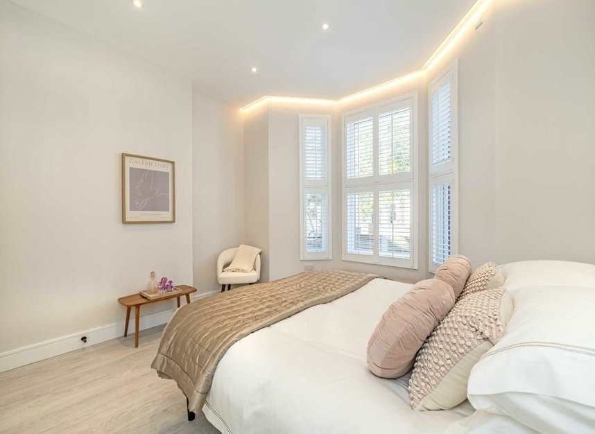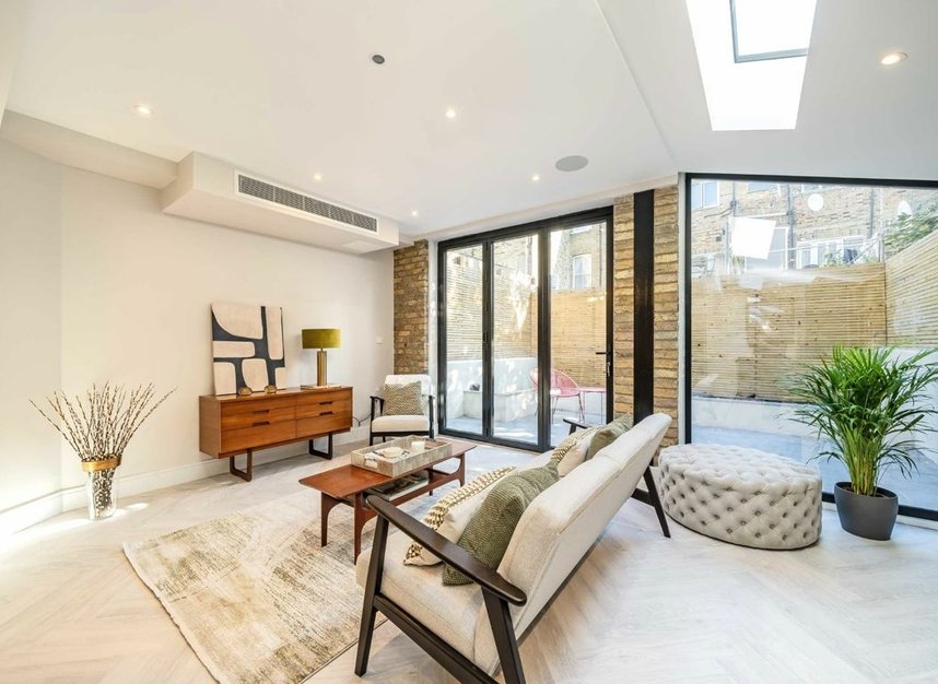 A fully renovated and refurbished ground floor flat. This property features two double bedrooms, a spacious open plan kitchen/reception with wall-length doors leading out to the garden, underfloor heating and smart controls for the lighting, temperature and speakers through the property.