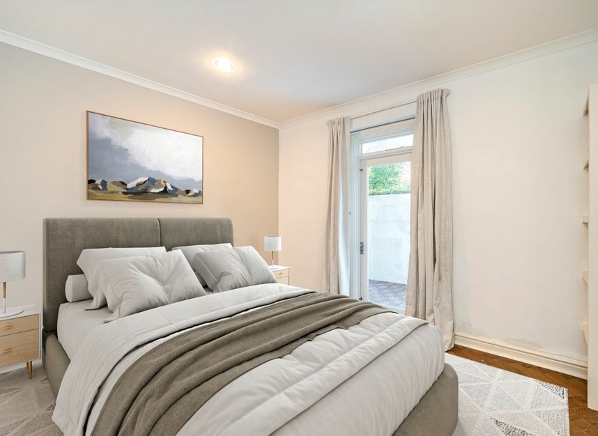 A beautifully presented two bedroom apartment in a Victorian period conversion. There is a separate kitchen and large reception room with space to dine which leads onto a private patio garden. The principal bedroom has access to a separate terrace, and there is herringbone wooden flooring, plenty of storage and natural light throughout.