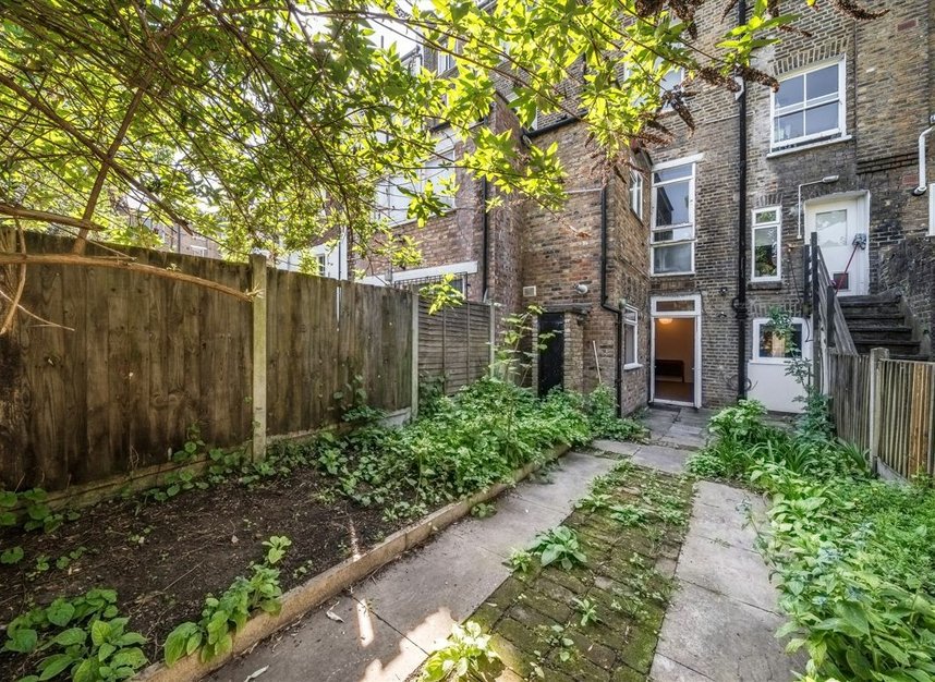 A two bedroom garden flat offering potential to extend in a prime Dalston location. Measuring over 725 sq ft the property benefits from having it's own private entrance, sash windows, original shutters and a Share of the Freehold. It is being sold chain free.