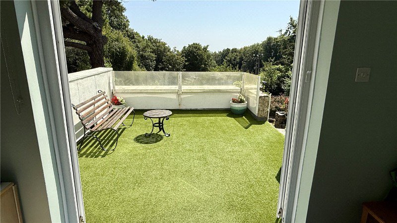 A delightful modernised pied de terre occupying a fantastic location in this sought after coastal village and enjoying lovely views over the trees to the sea. The property has been much improved by the present owner, decorated throughout using Farrow & Ball colours and wallpaper and has accommodation on two floors to include two bedrooms, open plan living room/kitchen and a shower room. Of further note is the most attractive terrace with French doors from the lounge all enjoying the beautiful views. There is an allocated parking space in the car park and communal gardens.