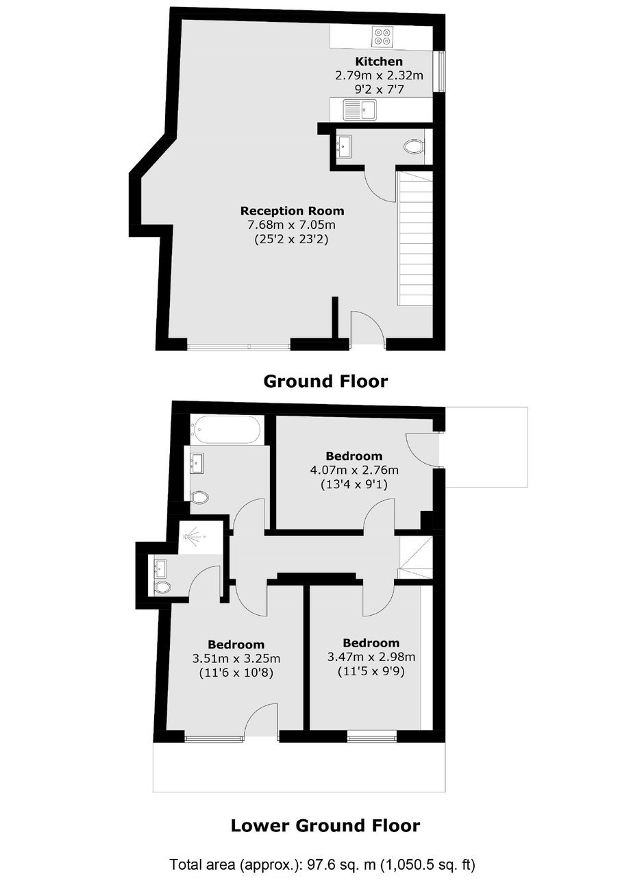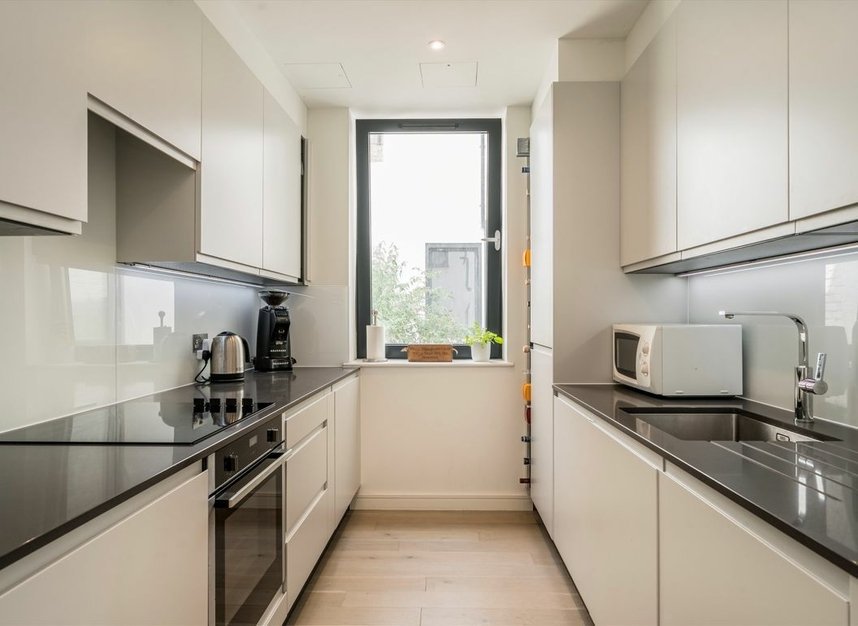 A modern three bedroom split level apartment measuring over 1000 sq ft in the boutique development, Nonet House. The property has its own private entrance, engineered wood flooring, a spacious open plan kitchen/living area, two bathrooms with one en-suite & separate W/C and two private patio terraces. The property faces South and has multiple floor to ceiling glass windows and doors providing natural light throughout.