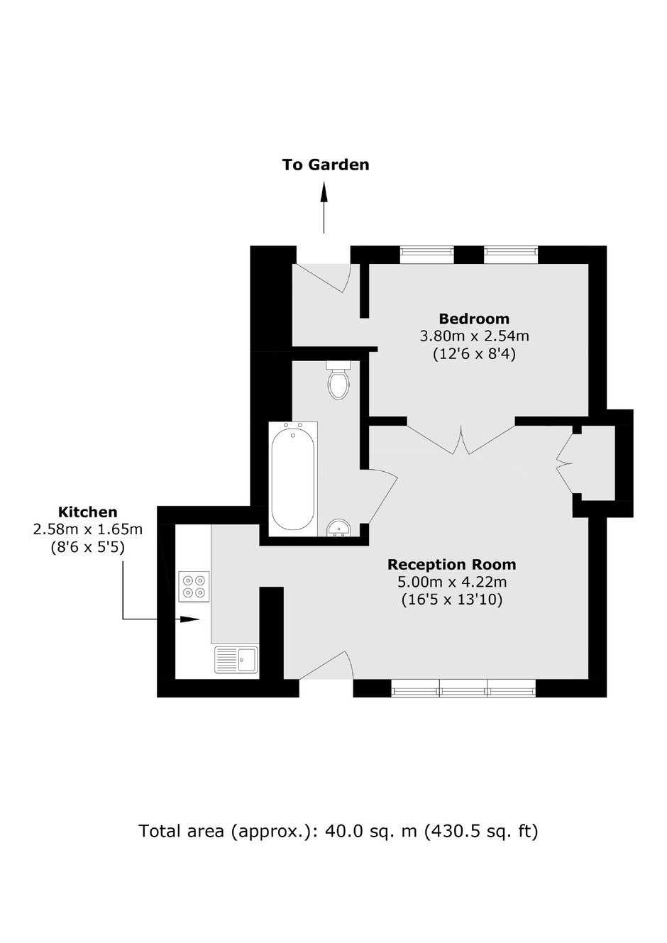 A one double bedroom ground floor apartment in a super central location. There is a bright and spacious reception room, separate kitchen, bathroom suite, double bedroom and direct access on to a large private garden.