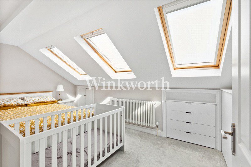 Upstairs, the loft has been converted to provide a further double bedroom with an en suite shower room. There’s excellent storage in the eaves, and full planning permission and building control approval were previously granted for a roof terrace. Though the consent has now lapsed, the precedent is there should the next owners wish to reapply.