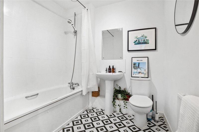 The bedroom is light and airy, finished with fitted carpet, while the stylish bathroom offers a contemporary three-piece suite, patterned tiled flooring, tiled splashbacks, and modern fixtures and fittings. Residents also benefit from access to a communal rooftop terrace—an ideal spot for entertaining or unwinding.