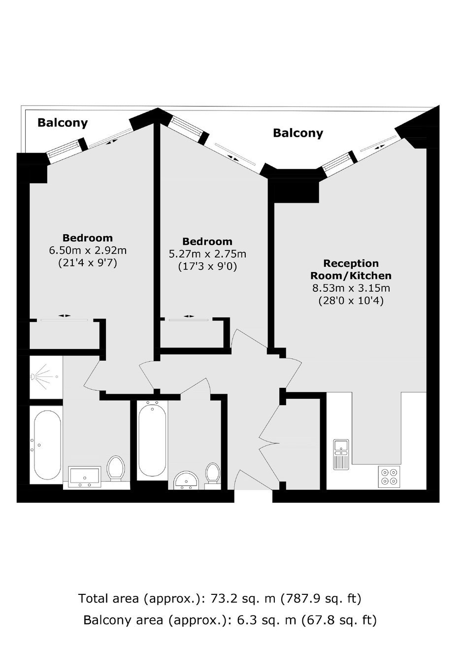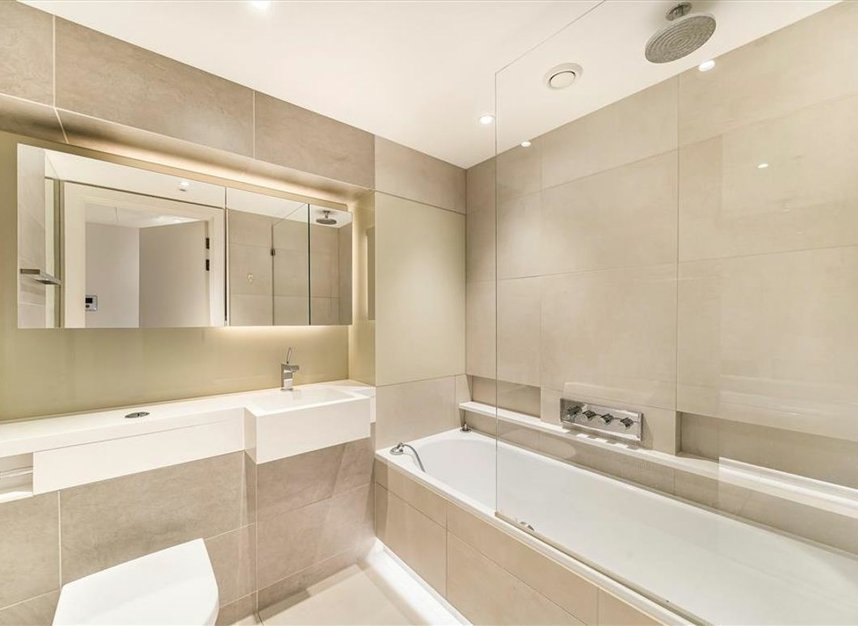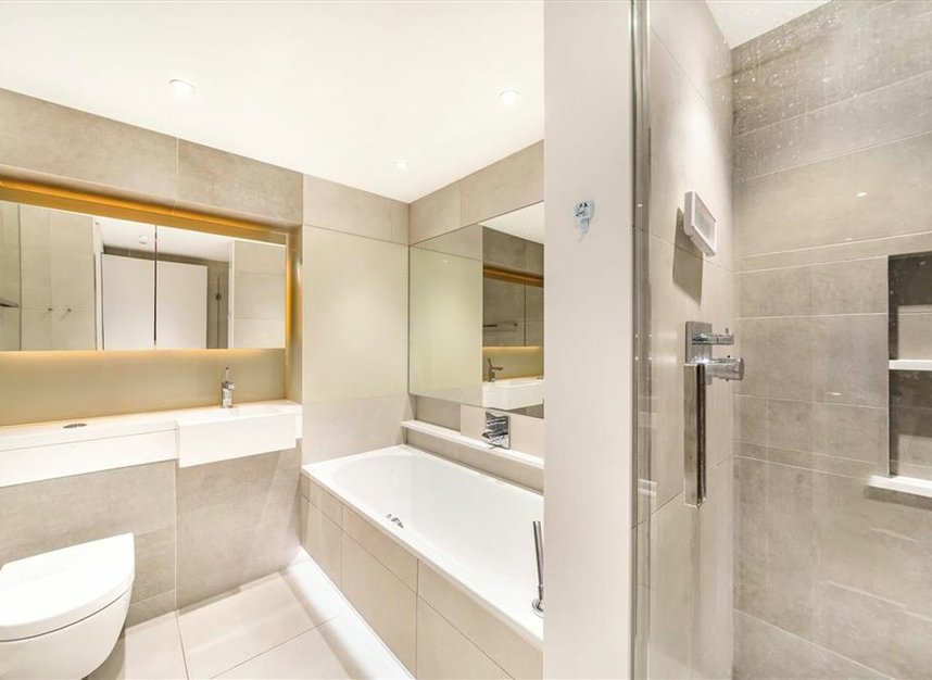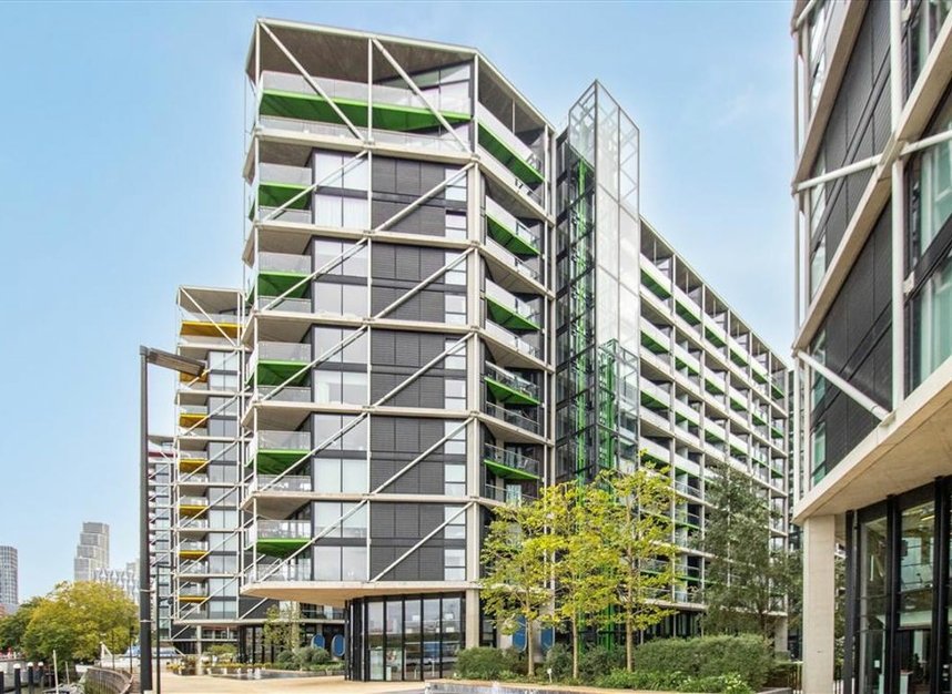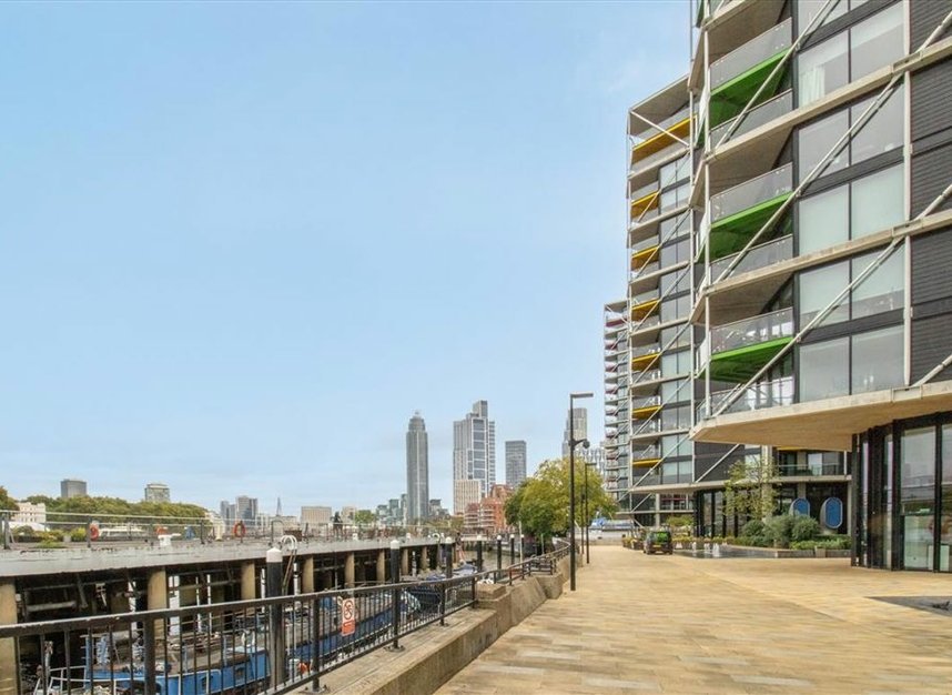 A stylish two double bedroom, two bathroom, first floor apartment in excellent condition throughout. Flooded with natural light the sociable open plan living room combines brilliantly with the high specification fitted kitchen and there is direct access onto a private balcony. Both the double bedrooms have built in wardrobes and direct access onto a balcony. The master bedroom enjoys views of the River Thames and access to a well finished ensuite bathroom with a separate walk-in shower. Furthermore the property has 24 hour concierge and access to other on-site facilities.