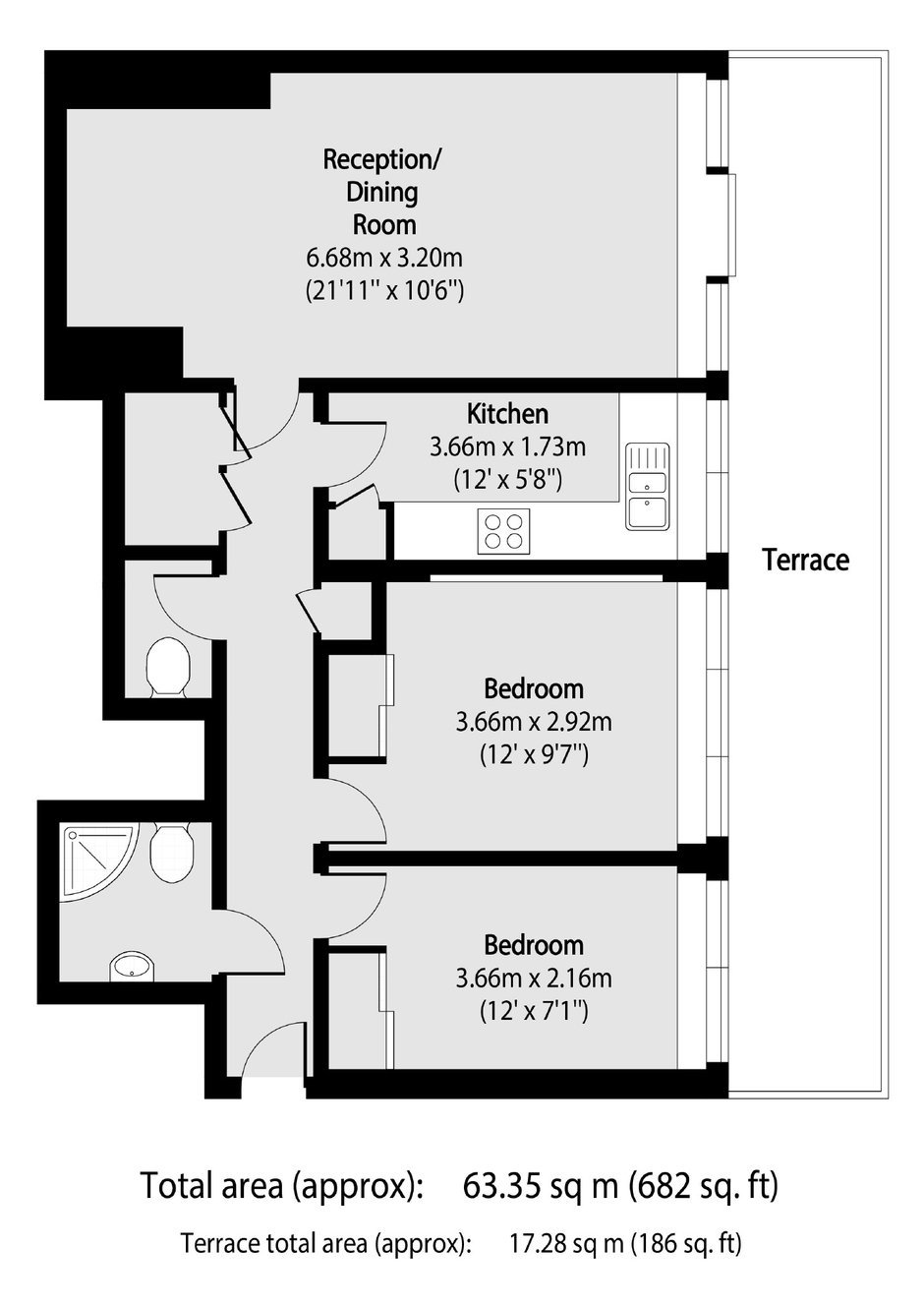 A two double bedroom apartment in a portered purpose built block with a lift. This well presented property has a spacious reception with room to dine that leads out onto a balcony, a separate kitchen and wooden flooring throughout.