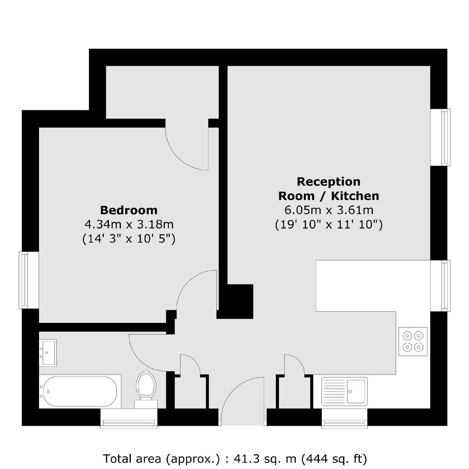 With useful built-in storage, the entrance hall opens directly into a spacious 19' open-plan reception/kitchen with dual aspect windows and a sleek modern kitchen with shaker style units, quartz worktops with breakfast bar and integrated appliances. A good-size double bedroom benefits from further storage and is served by a stylish bathroom/WC.