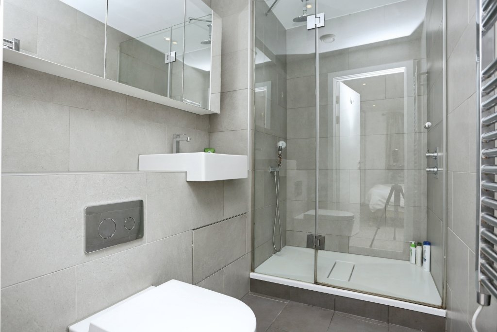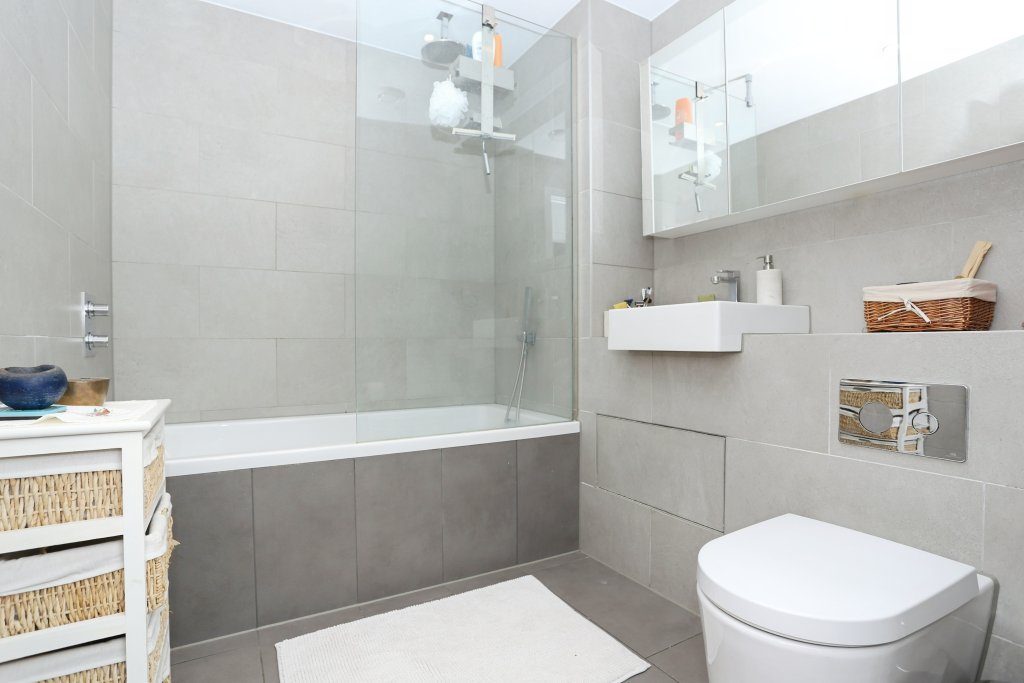 - Contemporary family bathroom with full size bath