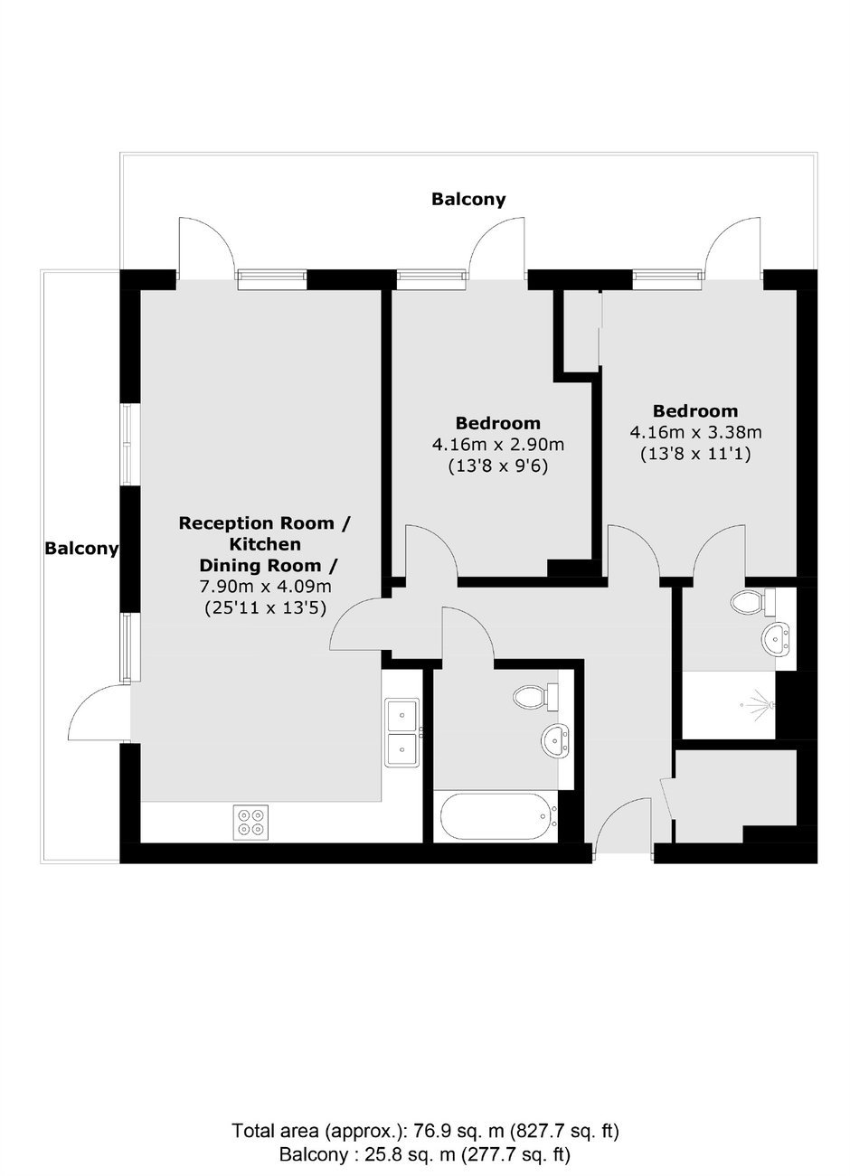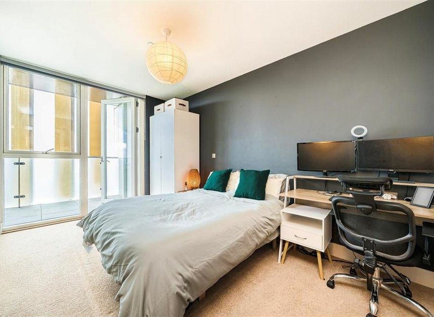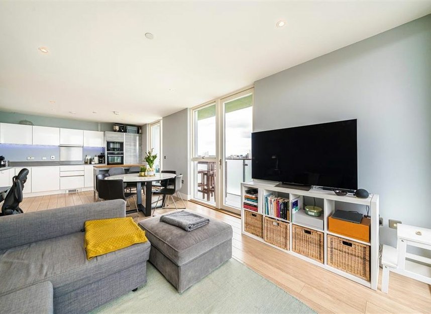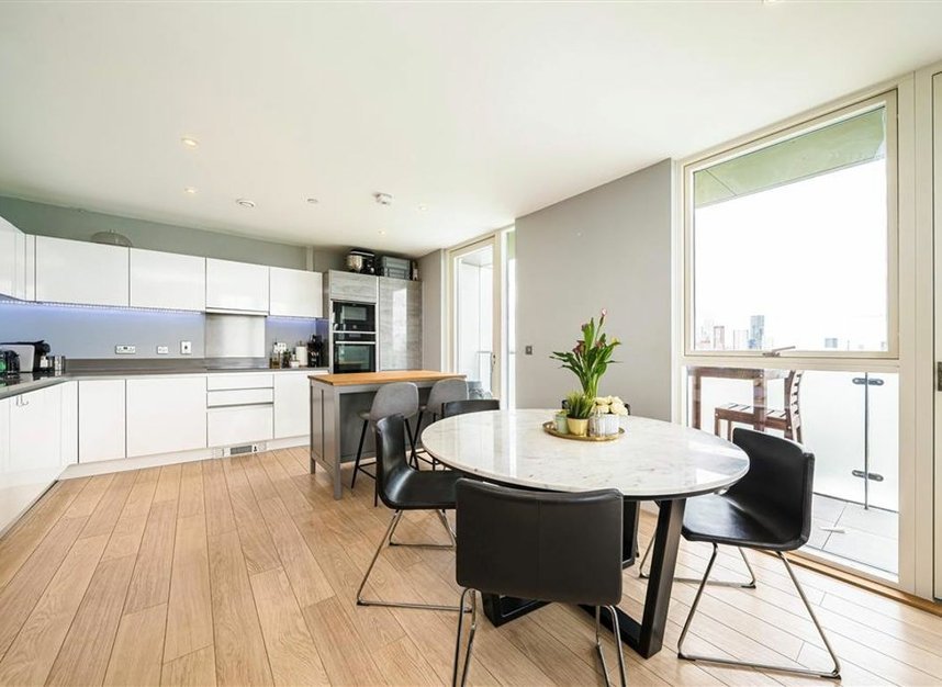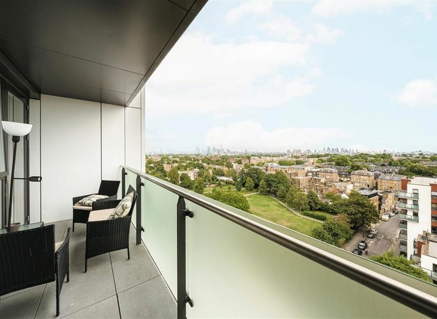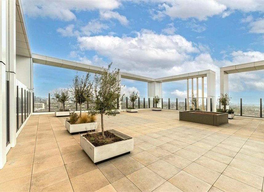A bright and spacious two double bedroom, two bathroom apartment benefitting from far reaching dual aspect views. This flat is in great condition benefitting from a spacious open plan living room, perfect for entertaining with access onto two large private balconies. Furthermore there is a large communal terrace on the 20th floor, offering 360 degree views of London. There is also a 24/7 concierge and bike storage.