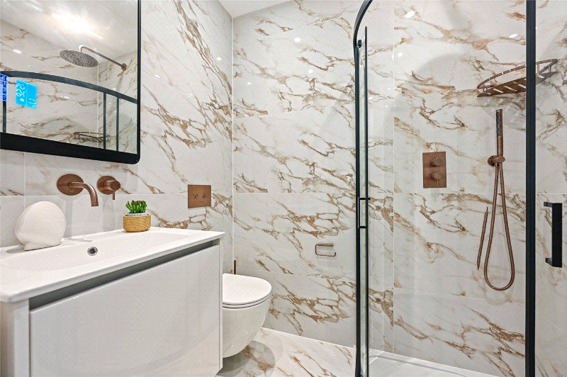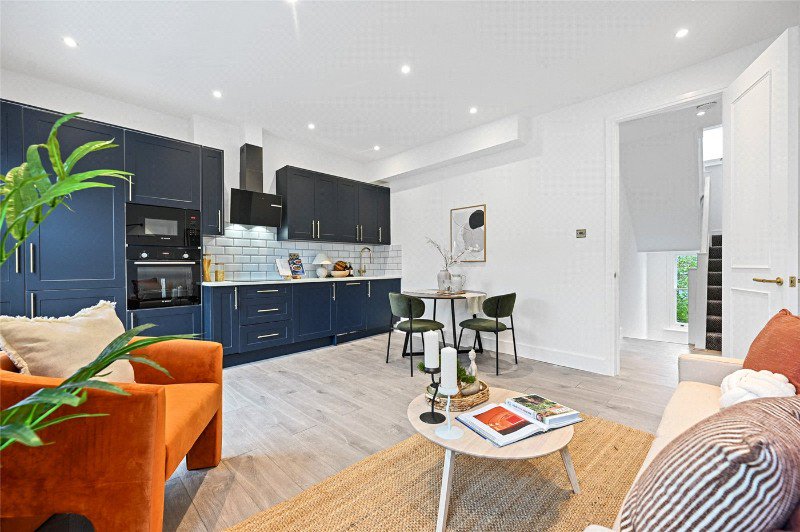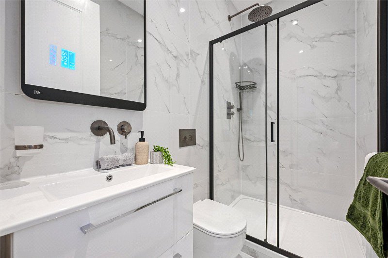 Presented to the market in excellent condition, the property has been fully refurbished throughout to an excellent standard. Benefitting from its own private entrance, the property is a split level flat offering over 1000 sq ft of living space. The first floor comprises open plan reception and kitchen, double bedroom and separate bathroom. The top floor has another double bedroom with en-suite shower room as well as the main bedroom which also benefits from en-suite shower room and ample built in storage.