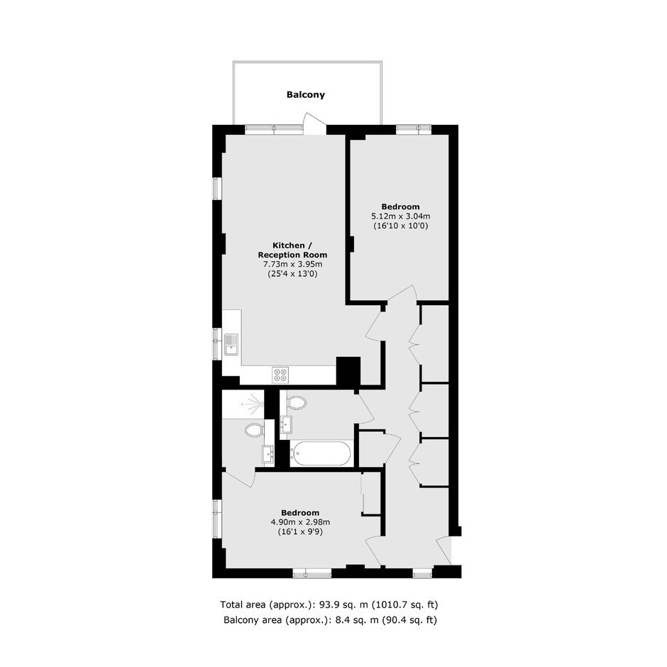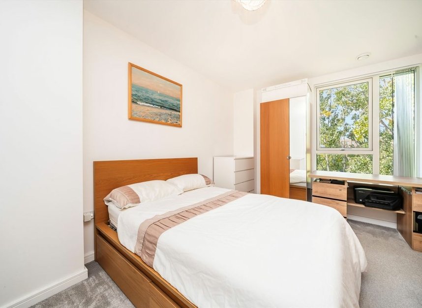 The apartment features a bright and spacious open-plan kitchen/reception area with full-height windows that flood the home with natural light and open onto a large, private balcony overlooking the local park. Both bedrooms are generously sized, with the principal bedroom benefitting from an en-suite bathroom.
