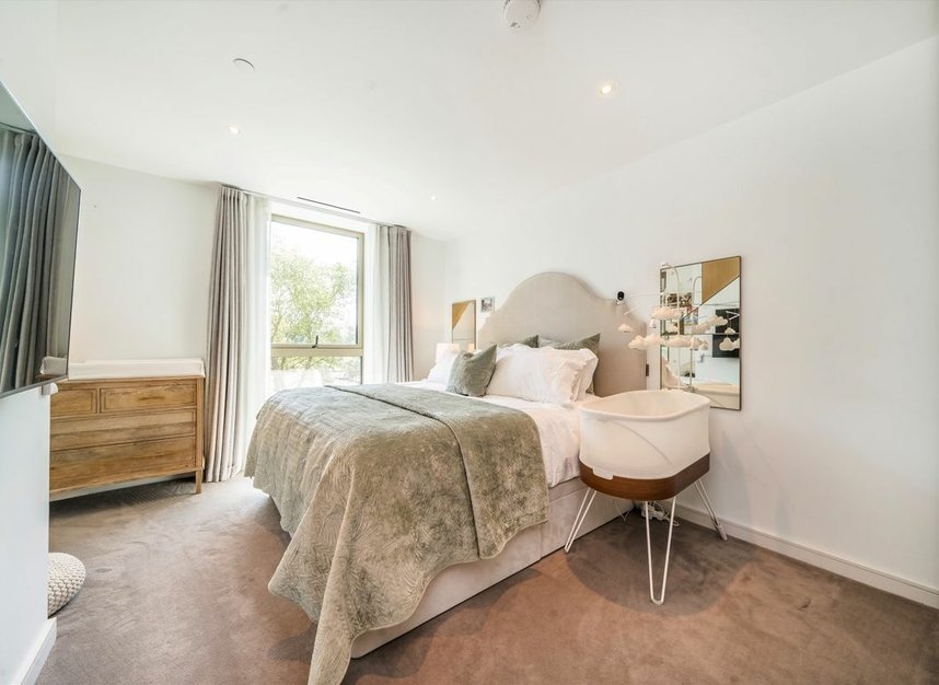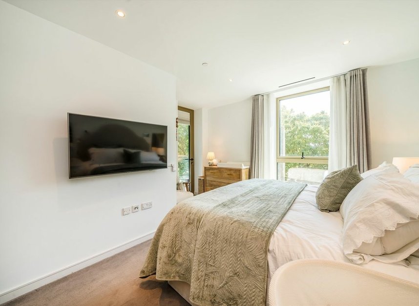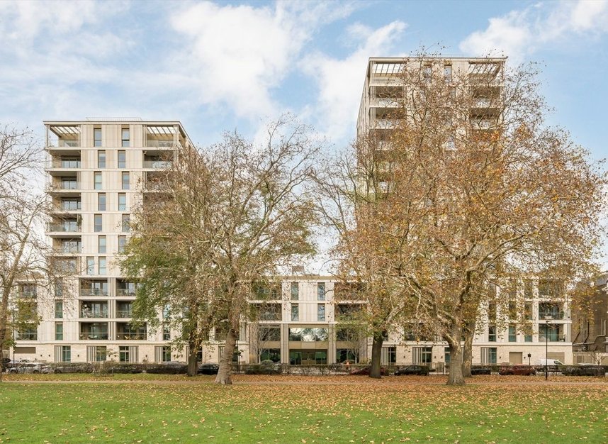 An immaculate, park-facing apartment in the RIBA award-winning Otto Building, perfectly positioned on the second floor to offer rare tree-canopy living. The property measures over 764sqft and comprises two bedrooms, two bathrooms, and an open-plan kitchen/living area with floor-to-ceiling windows and doors leading to a private south-facing terrace. Residents enjoy premium amenities including a concierge, wellness room, communal roof garden, and secure bike storage.