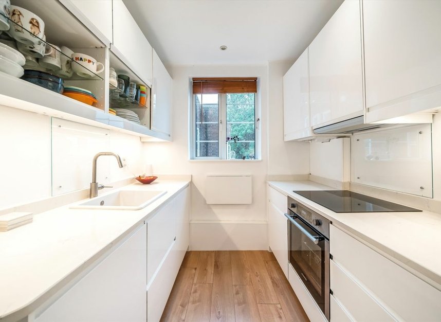 An immaculate three bedroom second floor flat located in a private art deco development. There is a bright and spacious living room, a recently renovated separate kitchen and well maintained communal gardens surrounding the building. The flat also benefits from a private garage and communal bike storage and is offered with no onward chain.