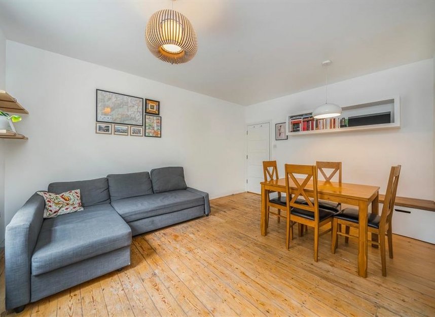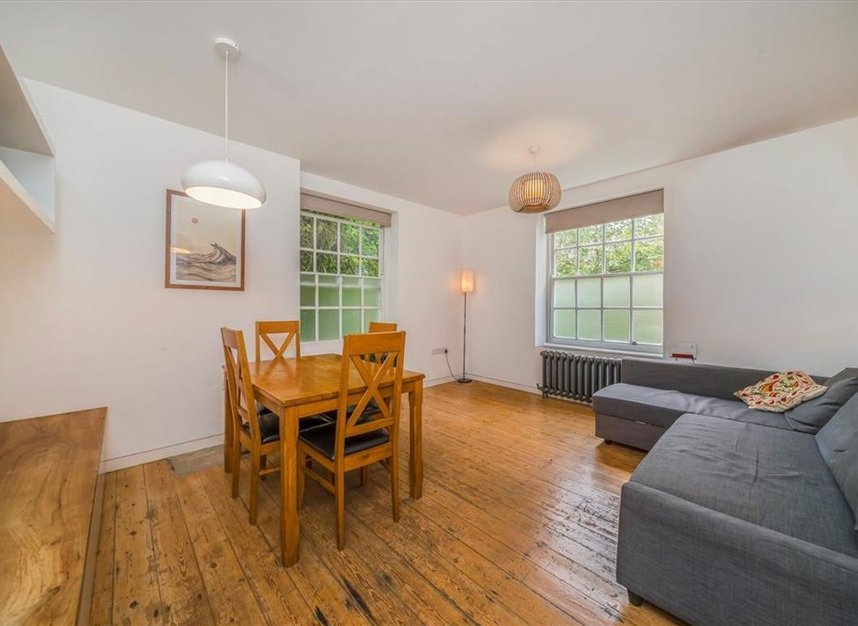 A two bedroom apartment set on the ground floor of this popular and historic mansion block style development. The apartment offers a large, open plan living room with ample space to dine and a modern separate kitchen with integrated appliances. The property also provides two bedrooms, both of which have in-built storage. In addition, the property features hard wood flooring throughout and a generous amount of natural light made possible by the large, characterful sashed windows.