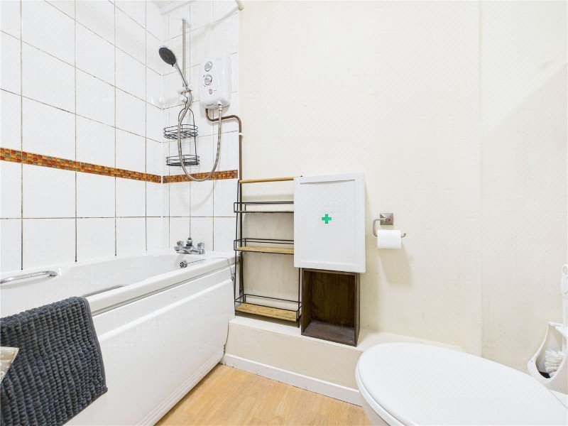 The separate kitchen is fitted with a range of wall and base units, integrated oven and hob, space for fridge/freezer and washing machine, and offers good counter space for cooking. The double bedroom is a well sized and peaceful space with room for a double bed and freestanding furniture. The modern bathroom is neutrally decorated and features a full size bath with shower over, wash basin, and WC.