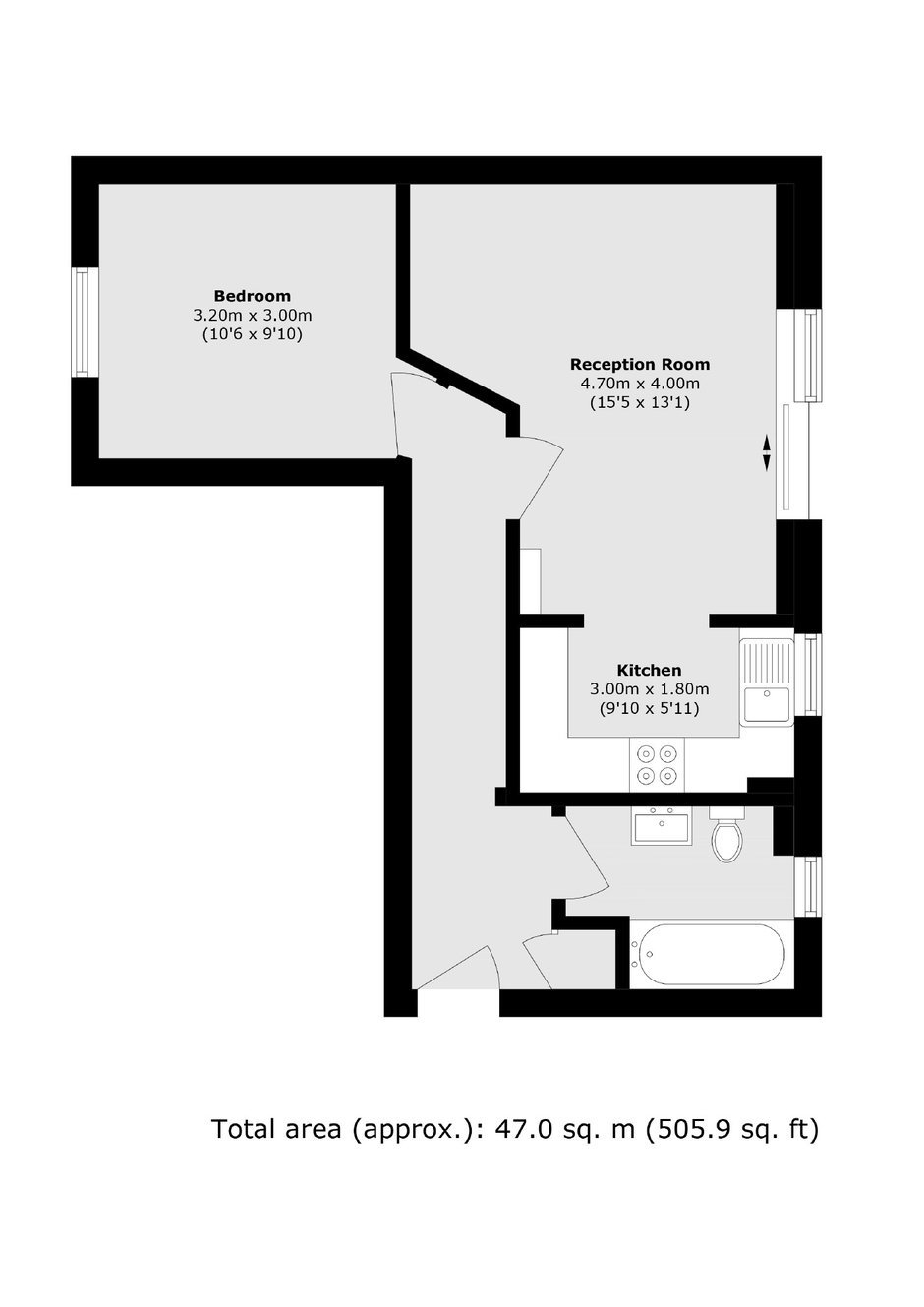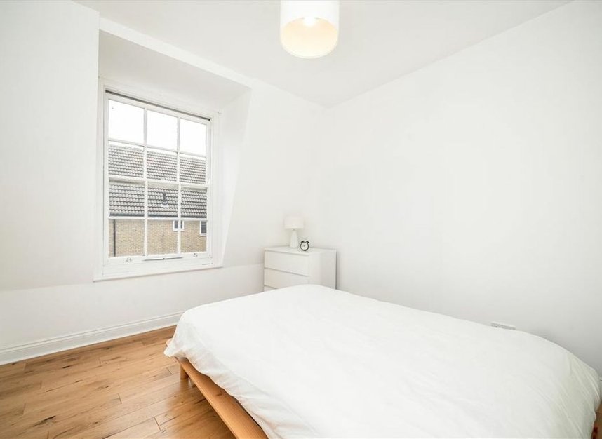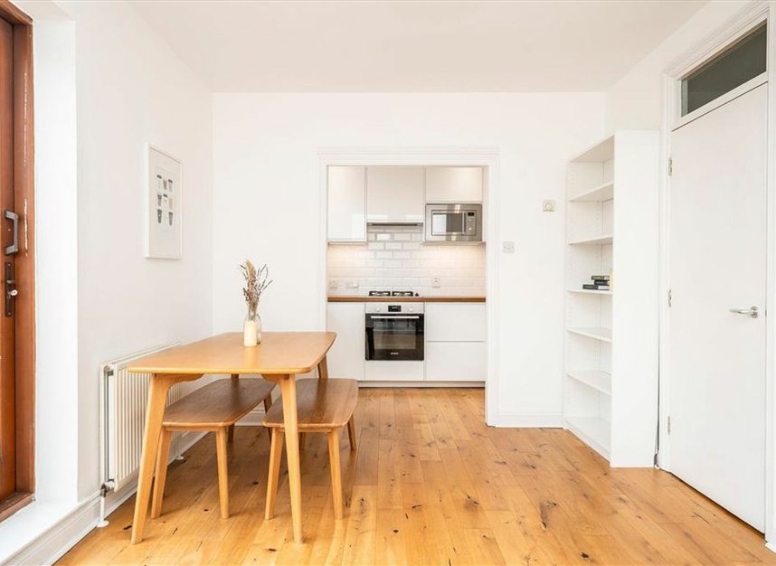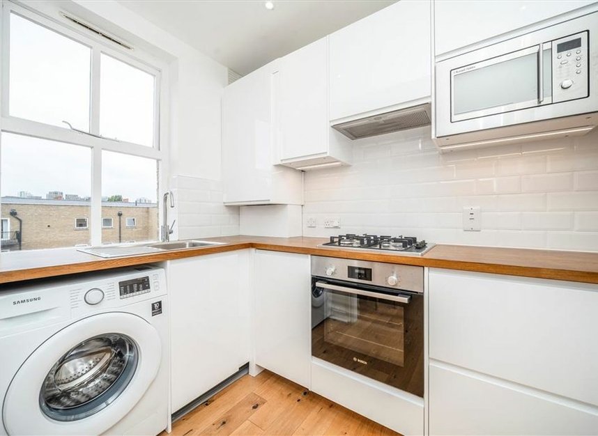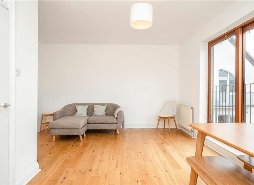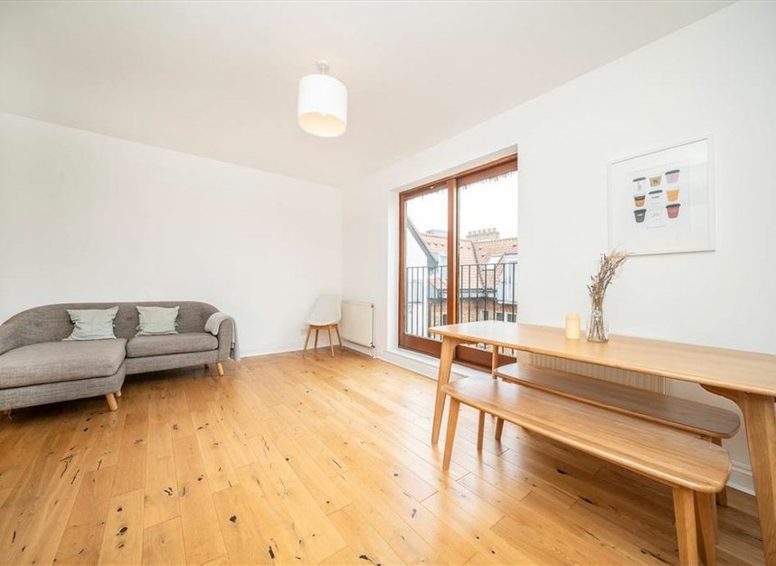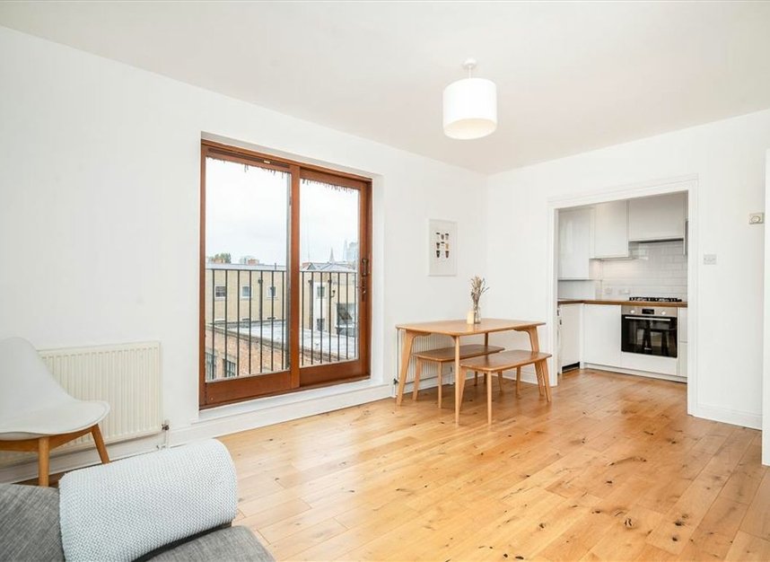 One bedroom apartment with modern interiors set on the top floor of a secure development. The apartment has a large living room with ample space to live and dine and a semi-separate kitchen which has recently been refurbished and has full integrated appliances, this area also gives access to the properties Juliette balcony with open views made possible by the properties elevation within the building. The apartment has one good size double bedroom with in-built storage, plenty of further storage in the hallway and a recent refurbished bathroom. The entire apartment gets a generous amount of natural light complimenting the light tones of this recently renovated space.