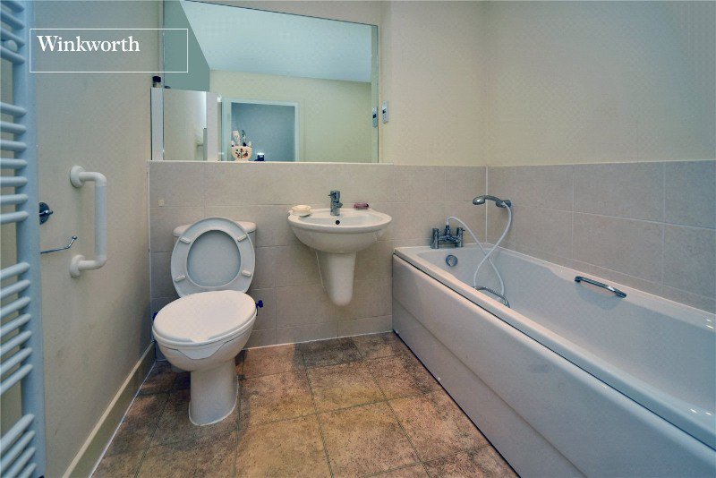 The accommodation comprises a dual aspect reception room with doors opening onto the communal gardens, a well-proportioned fitted kitchen with plenty of cupboard and work space, two good sized bedrooms, an en-suite shower room with WC and a main bathroom. Externally, the property benefits from an allocated parking space plus visitor permit parking.
