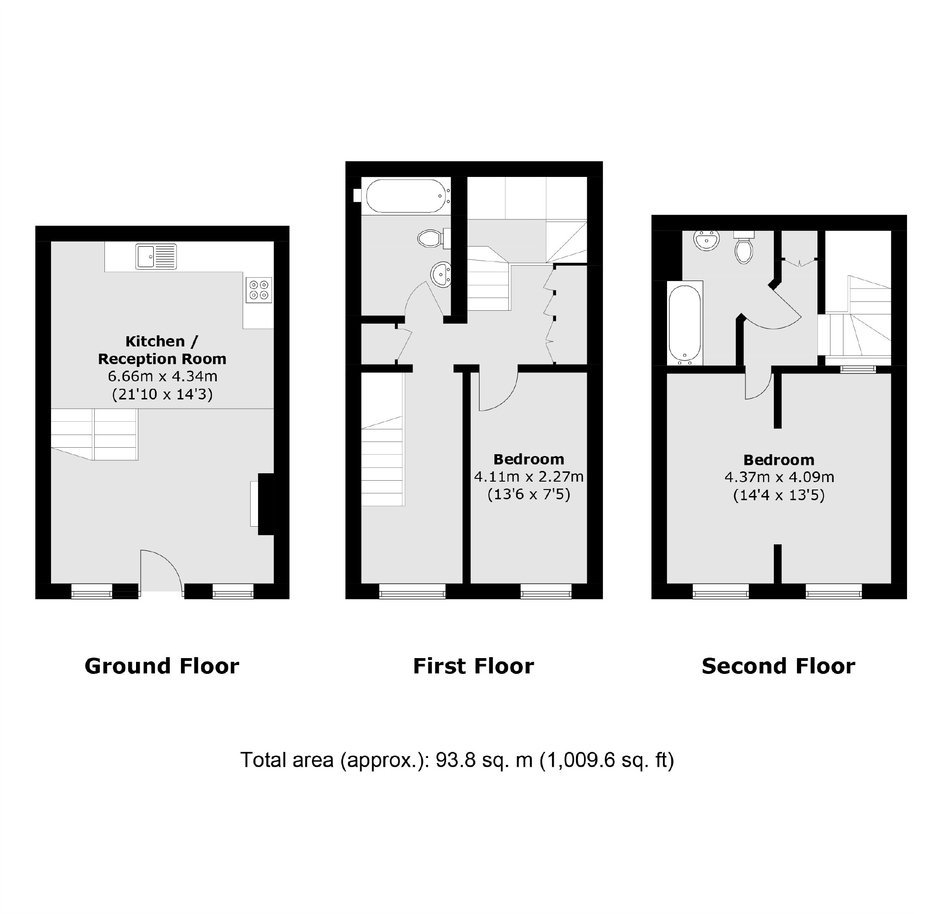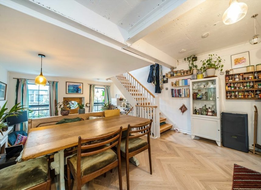 A three-storey maisonette in a quiet gated mews located between London Fields and Victoria Park measuring in excess of 1,000 sqft. The property has a split level open plan living area on the ground floor, a double bedroom and family bathroom as well as a study area on the first floor and the top floor consists of the main bedroom with a large bathroom. The property also features a patio out the front.