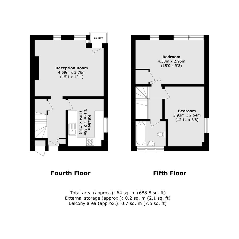This beautifully presented, bright and spacious, two bedroom duplex occupies the top two floors of this small residential development. Boasting a generous kitchen and a modern bathroom, the apartment also features a lounge opening onto a small private balcony. Residents benefit from a communal garden and the apartment has two private external storage areas, making this a stylish and practical home in a peaceful setting with attractive views.