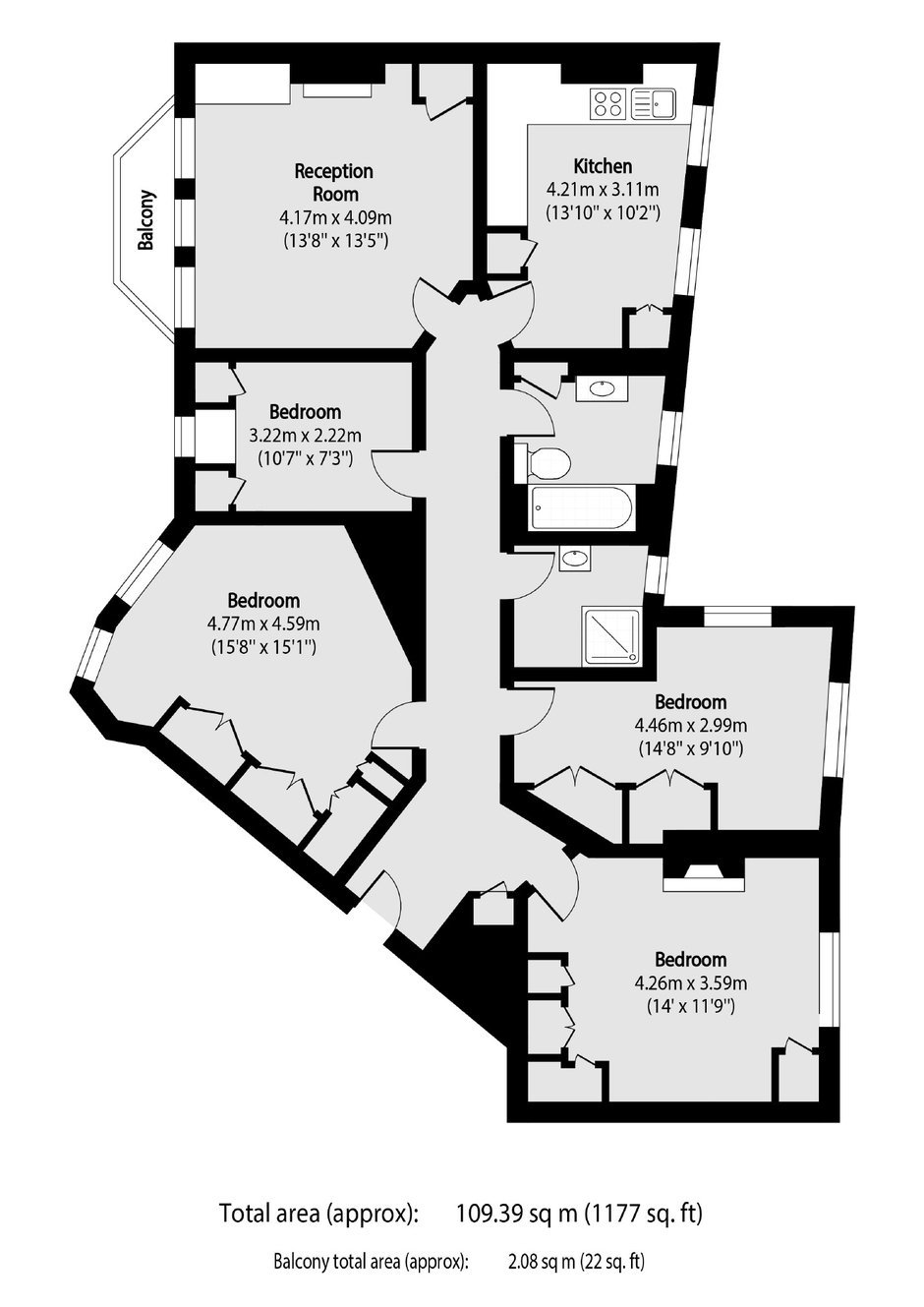 Situated in a popular red brick mansion development, this four bedroom, two bathroom apartment offers fantastic space and value for money. This property has over 1100 sq/ft of space, is in good condition throughout, has a share of freehold and no onward chain.