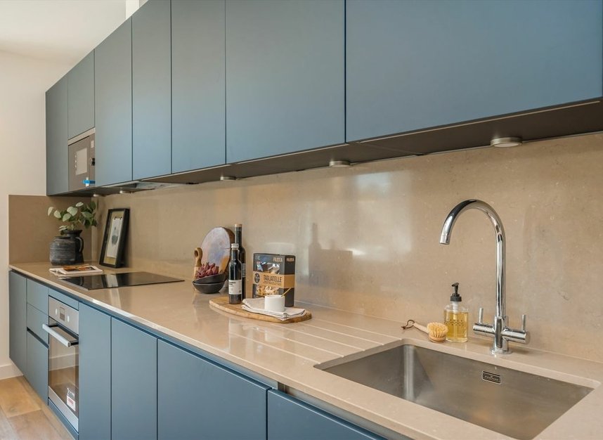 A two-bedroom, two-bathroom penthouse apartment, located within walking distance to Wimbledon Village. There is a large terrace with far reaching views over Holland Gardens, a high-end kitchen with German appliances and energy-efficient underfloor heating throughout.
