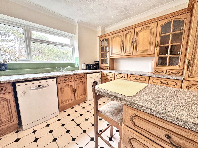 The bright lounge diner is a particular feature of the property having dual aspect windows and double patio doors which lead out onto the large and sunny balcony which has a stainless steel and glass balustrade and enjoys treetop views across Branksome Park. The kitchen is fitted with a range of base and eye level work units with space and plumbing for freestanding appliances.