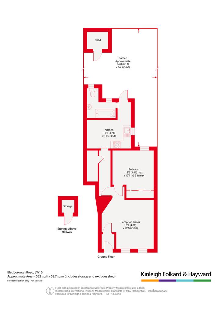 Comprising of a spacious reception room bathed in natural light, a well-proportioned bedroom, and a thoughtfully designed kitchen that opens out to a generous private garden, a true sanctuary. With 552 sq ft of living space, clever storage solutions, and a shed for added convenience, this property offers both practicality and charm.