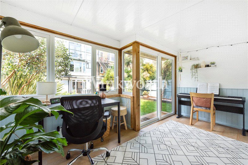 The south-facing garden is a real highlight, perfect for enjoying long afternoons in the sun. At the far end sits a self-contained garden office.