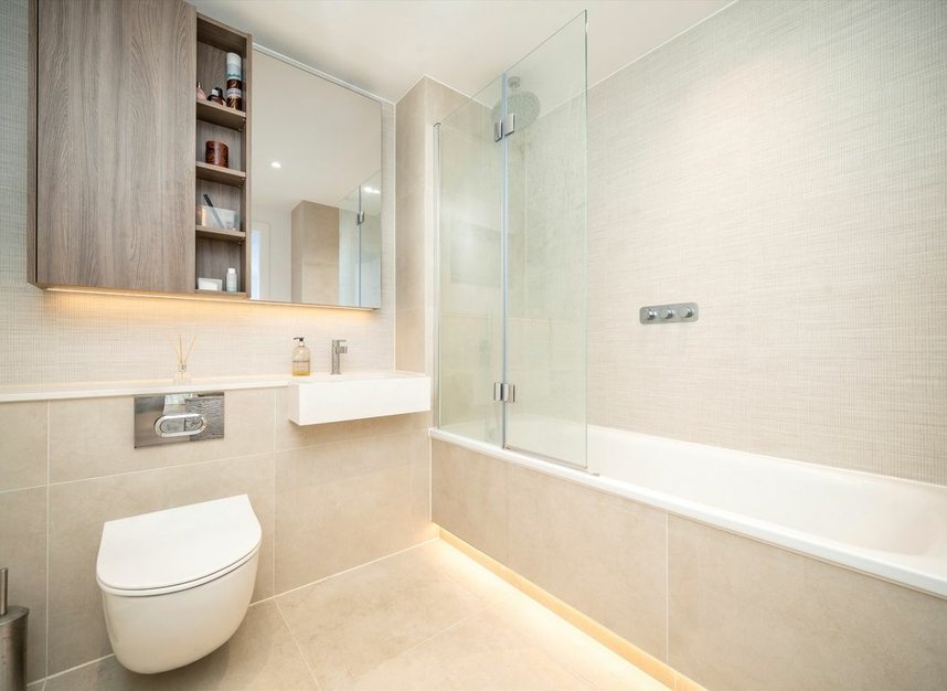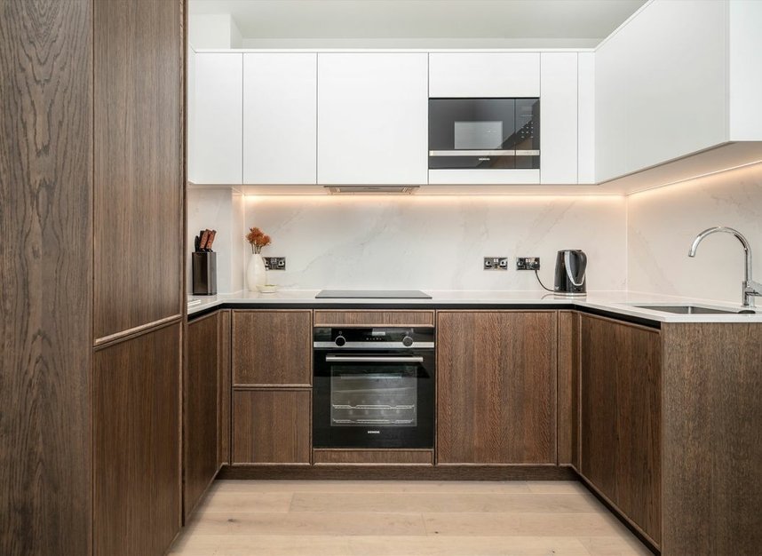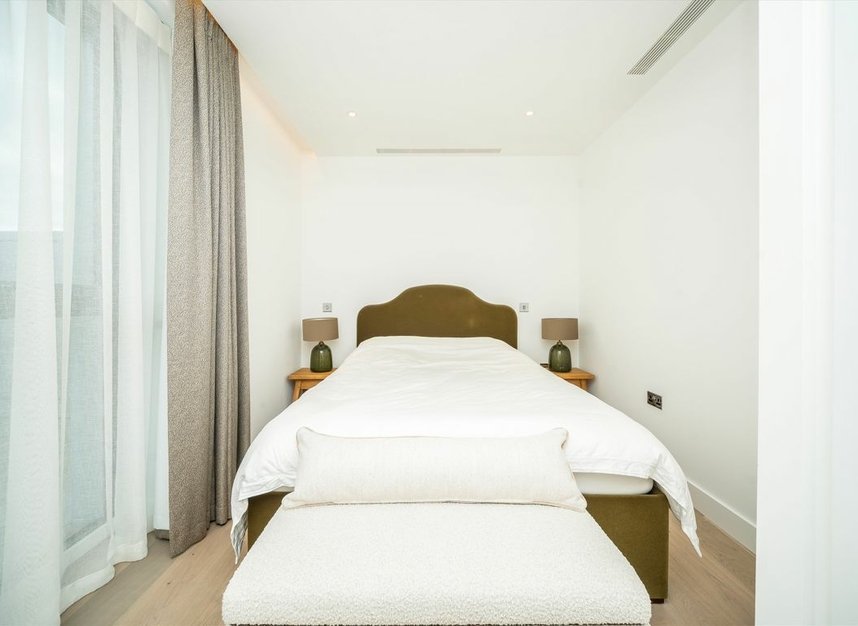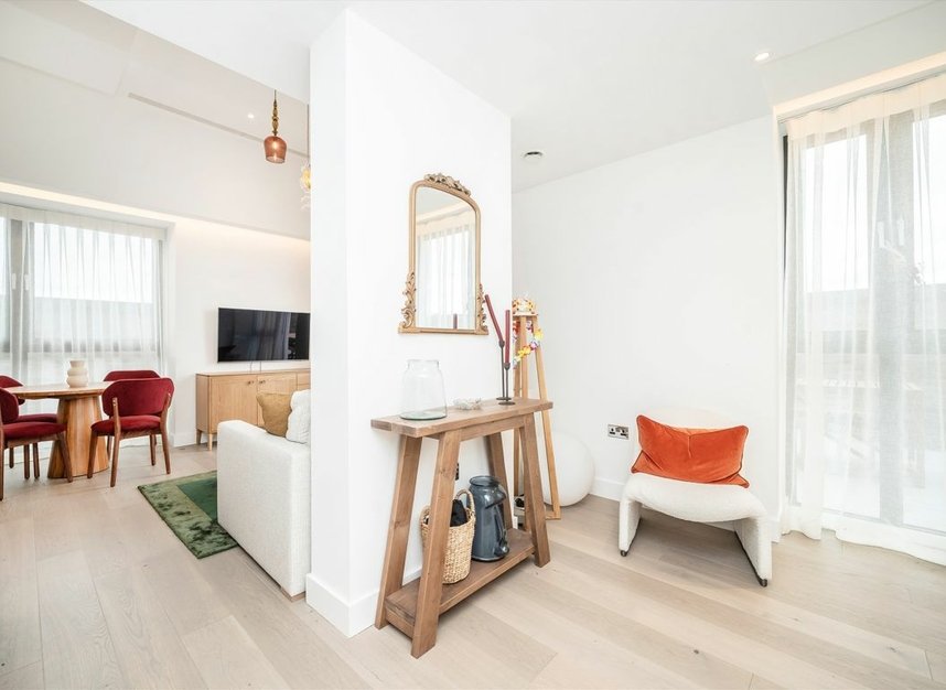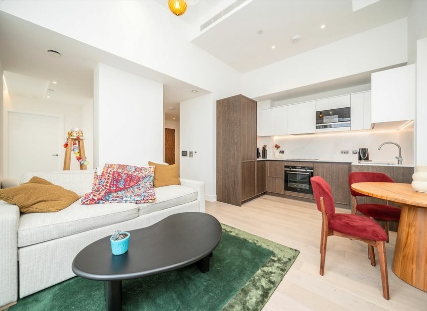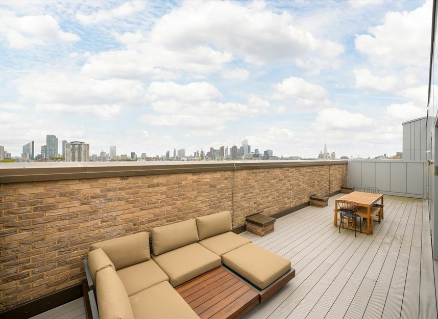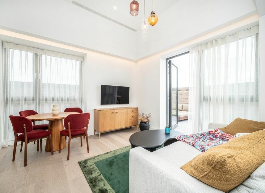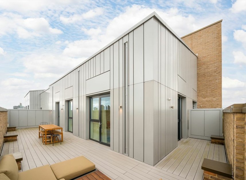A unique, one double bedroom home located on the top floor with a private roof terrace spanning over 500 sq ft. There is a fully integrated kitchen with built-in Siemens appliances opening up to a living/dining room, high ceilings, built in bedroom storage and a family bathroom.