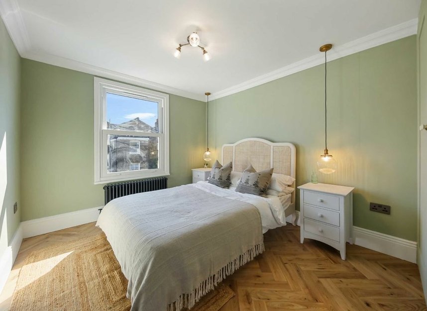 A stunning, recently refurbished top floor flat set in a Victorian conversion. This modern flat comes complete with three bedrooms, one of which features an en suite, an open plan kitchen/reception, wooden flooring and ample storage throughout.