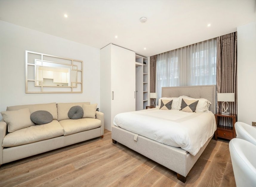 An exceptional studio apartment on Coram Street, renovated to an impeccable 5-star standard. Features include air conditioning, granite worktops, solid oak flooring, and luxury furnishings throughout including fitted wardrobes with LED's and underfloor heating. With a porter service, long lease, secondary glazing and unbeatable Bloomsbury location, this turnkey property offers refined living in central London.