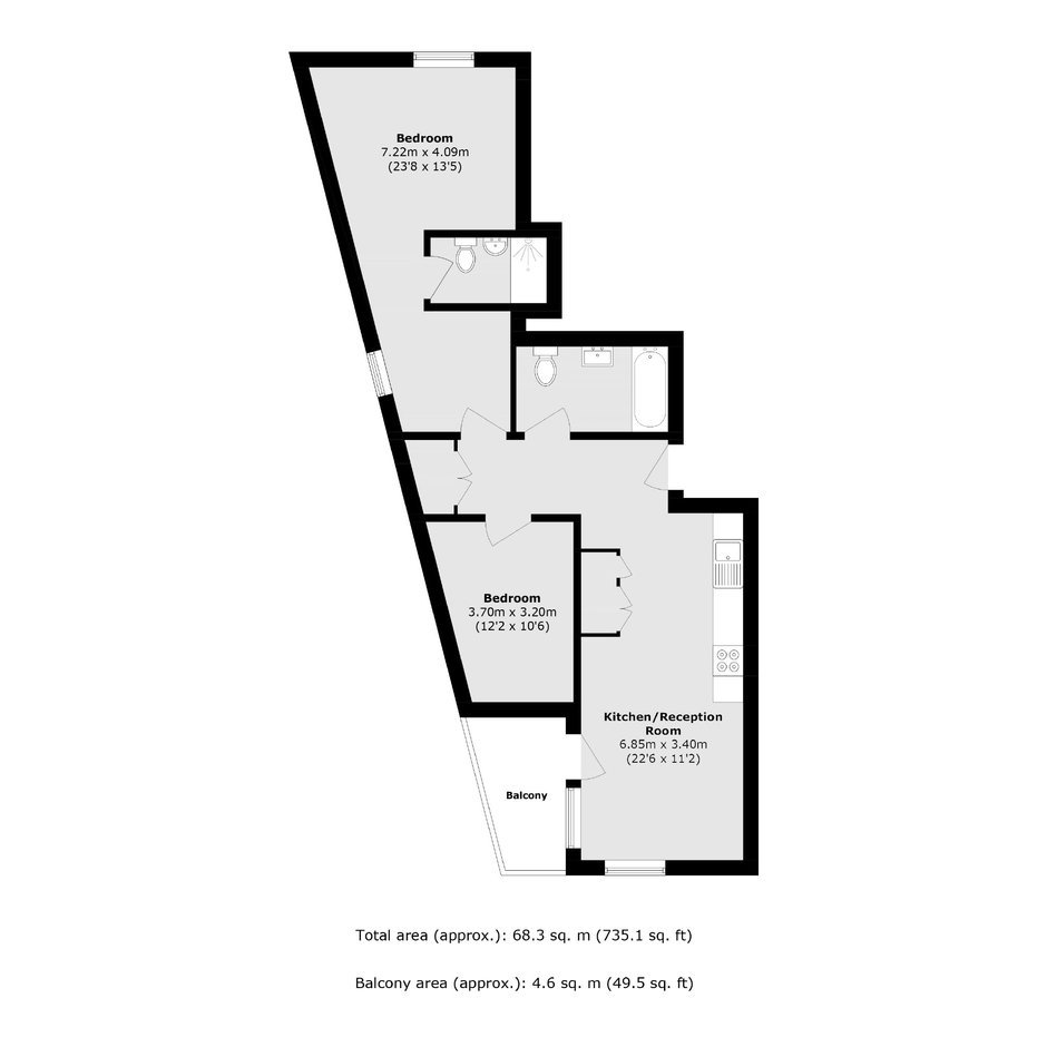 This two double bedroom two bathroom apartment features a spacious open-plan living area with a well-equipped kitchen, underfloor heating, and abundant natural light. The property further benefits from a private balcony and access to an on-site gym and fitness studio, indoor swimming pool and beautifully landscaped communal gardens.