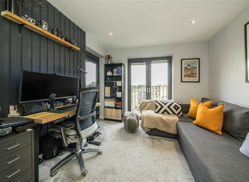 A stylish bright and spacious two double bedroom, two bathroom apartment on the top floor with lift access. The apartment has a spacious reception room with a lovely feature wall with electric fire place, providing a lovely bit of character to the room. There is great space for both living and dining, combining brilliantly with the high specification fitted kitchen and complete with direct access onto a private balcony providing great views of the city. There is excellent storage throughout the property and an allocated parking space. Sold with no onward chain.