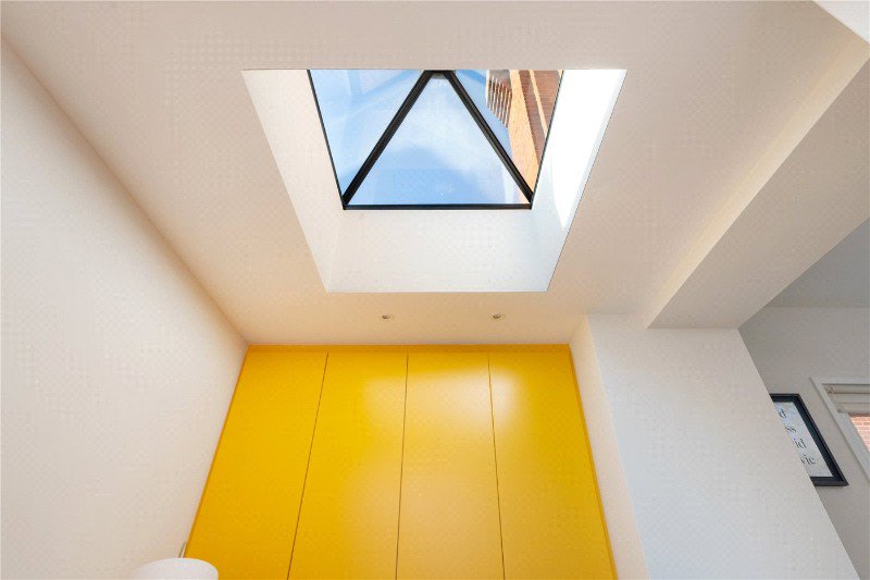 Enter into a welcoming hallway leading to a bright, open-plan living/dining area with a well designed, fully integrated kitchen. A striking atrium floods the space with natural light, while bespoke floor-to-ceiling storage adds personality and function.