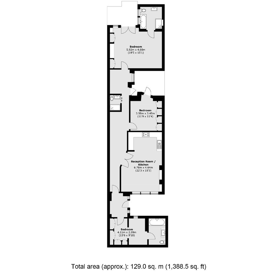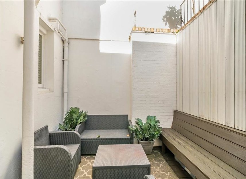 A beautifully presented three bedroom apartment with two private patios and its own front door in a white stucco fronted Victorian building. There is an open-plan kitchen and reception room, space for a large dining table and three bathrooms (one en suite). Measuring almost 1,400 square foot, this is an ideal property for anyone looking for a spacious home.