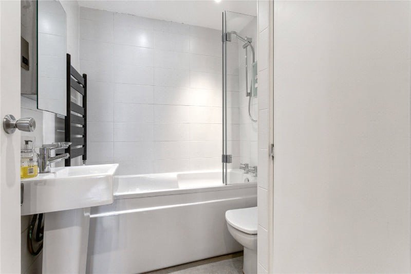 Standing at 847 sq. ft., this bright and airy two-bedroom, two-bathroom apartment with separate kitchen is located on the ground floor of a Neo Georgian development in Canonbury, N1. With the views of the gorgeous period villas on one side, and the rear communal gardens on the other side, the kerb appeal of this property is incredibly special. Accommodation comprises of a large living room with South -East facing double sash windows overlooking a peaceful and quiet road, while the North- West facing separate kitchen is set across the hallway and leads to the communal gardens. Both bedrooms are excellent doubles and offer built in cupboards with en-suite bedroom benefiting from a renovated three-piece bathroom with a shower. The property is completed with a contemporary, modern family bathroom with a bathtub.