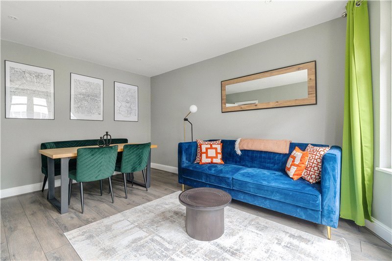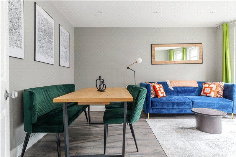 The reception room is the perfect entertaining space, with space for multiple sofas and coffee table, as well as a dining table and chairs. Around the perimeter of the room there is also plenty of space for free-standing storage. At the end of the reception room, there is a large bay window bringing in plenty of natural light.