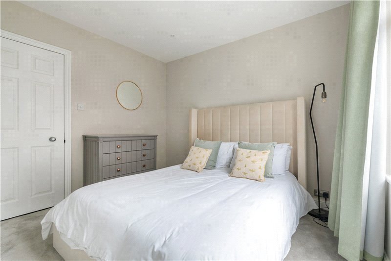 The master bedroom, at the end of the hallway, is a fantastic space with ample fitted storage. There is space for a king-size bed, bedside tables and further freestanding furniture. The second bedroom, next to the master, is also well-sized and offers built in storage and space to accommodate a double bed and further free-standing furniture.