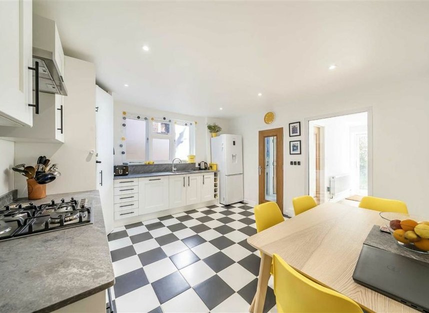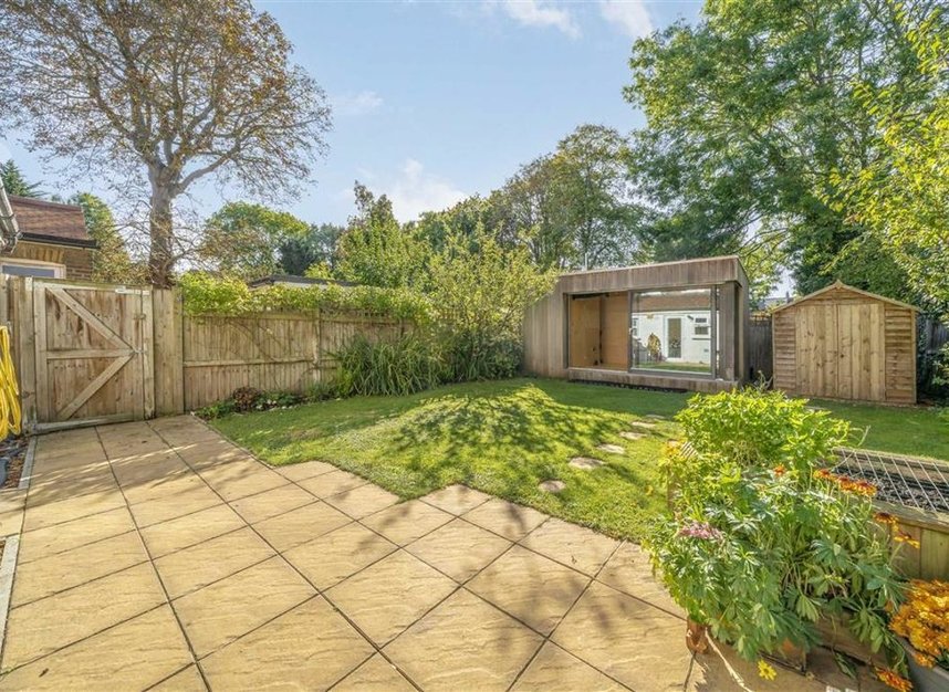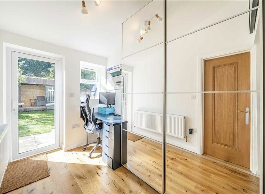 Adjacent to the living room is the modern kitchen-diner which was designed and installed by the current owners. This fantastic space features an amazing amount of storage and ample space for a dining table. Behind the kitchen is a clever utility space in the hallway which leads into the modern family bathroom. A clever extension has created a space behind the kitchen which the current owners use as a home office space with door out into the garden but could also be used and adapted to be a spare guest bedroom if required.